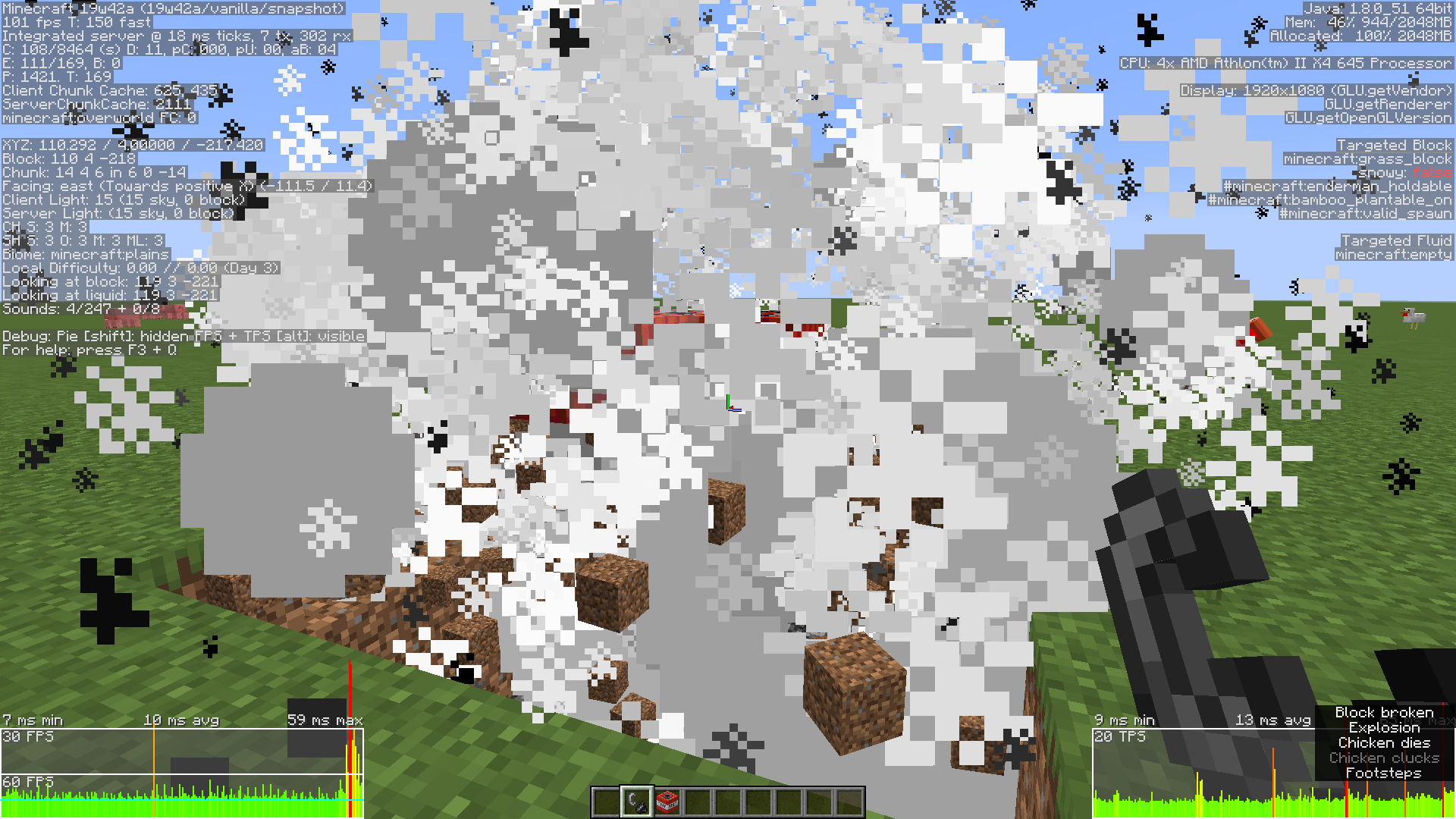When a 3x3 placement of TNT (Typically found in Desert Pyramids) explodes it creates slight bit of lag.