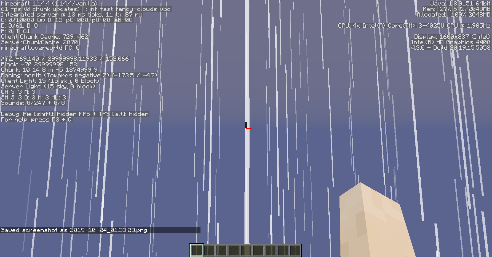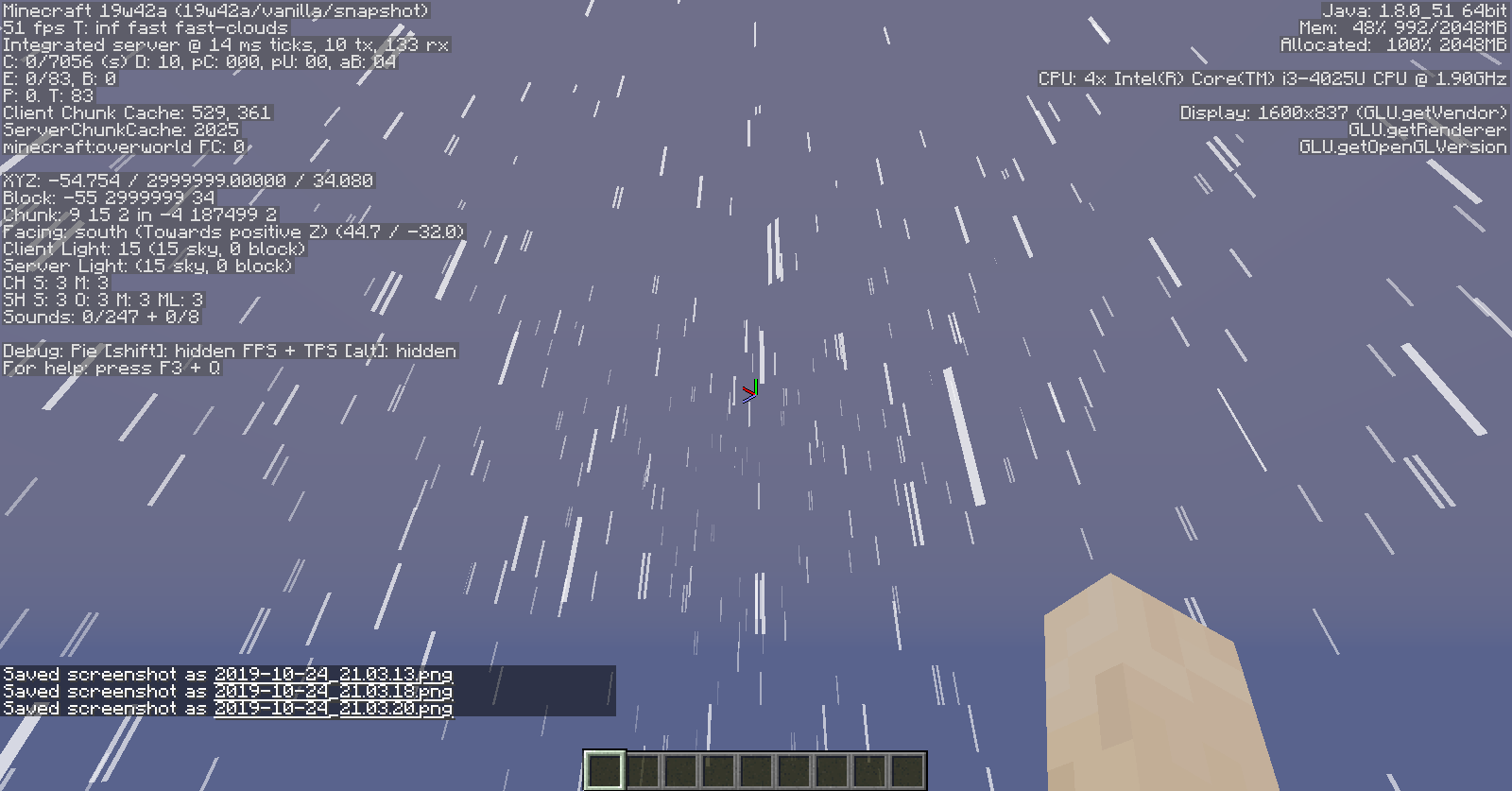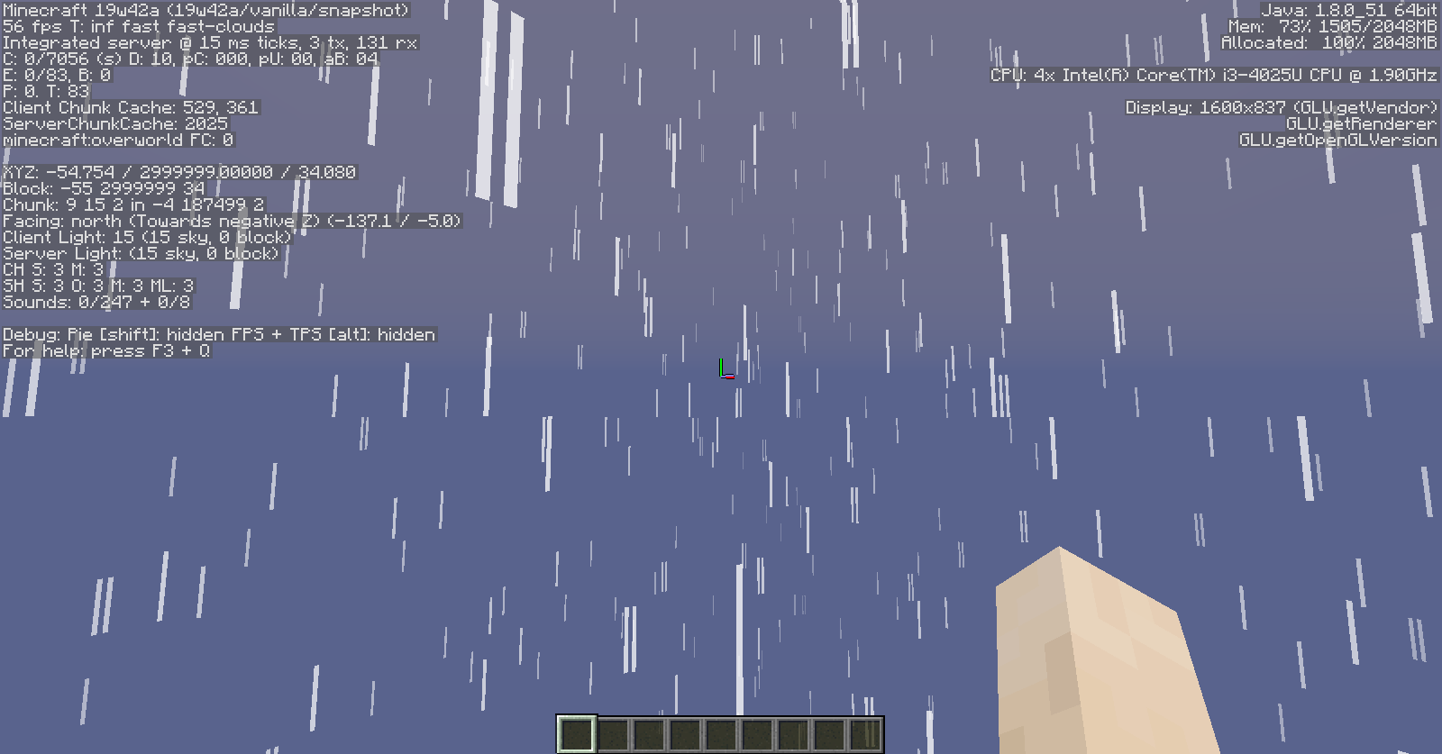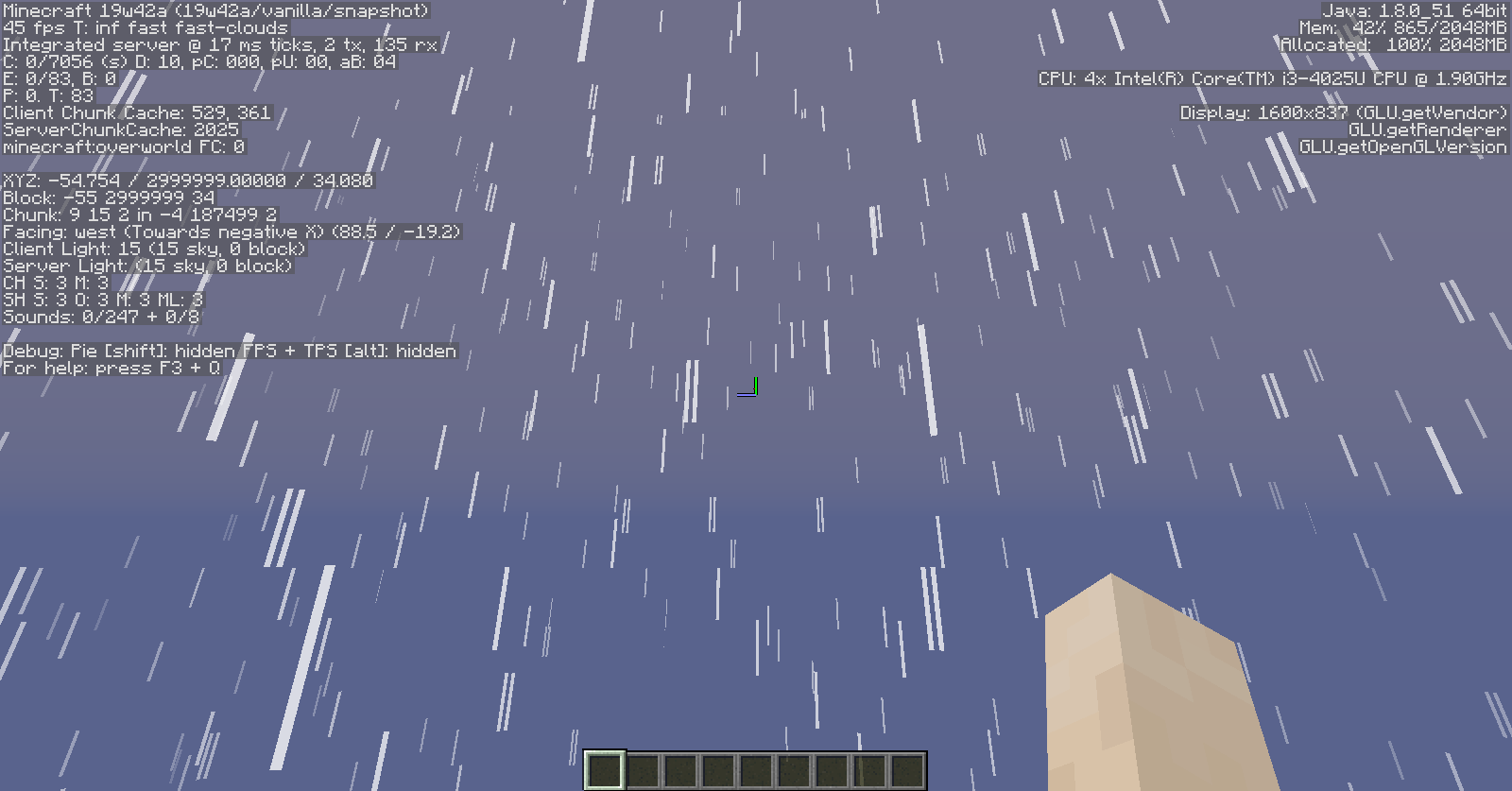 I can reproduce this as far back as Beta 1.6.5, as extreme heights tend to crash Beta 1.5 through Beta 1.6.4. The bug also manifests as far back as late Classic with rain.