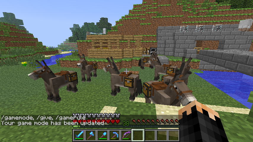 While I was on multi-player I logged off but on my donkey. When I logged back on I was on my horse but there was also another donkey there (a duplicate) with the same things in its inventory as well. This also happens in single player. Just get on the horse and log off or quit, then log back on or enter the single player game and the other horse entity will be there.