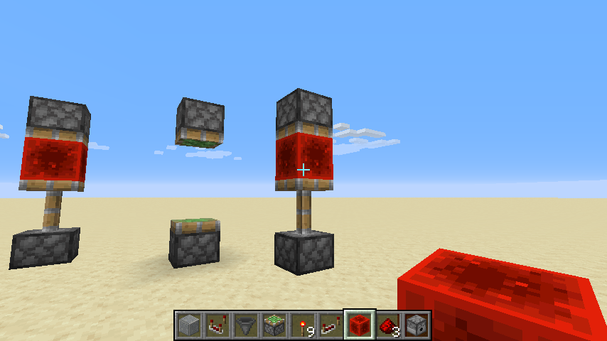2 blocks above it, place a piston facing downward so that its face is facing the redstone block (but the face should not touch the redstone block)