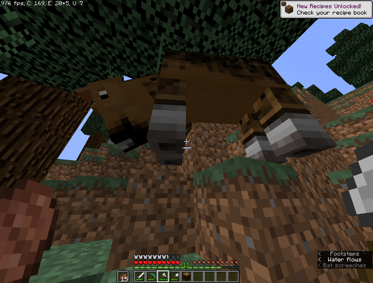 The horse is standing on top of the grass block.