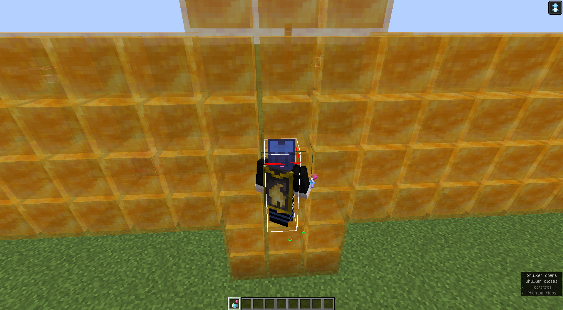 When the player or mobs moves up from the side of the honey block, player or mobs will not be slowed down by the honey block or show the particles.