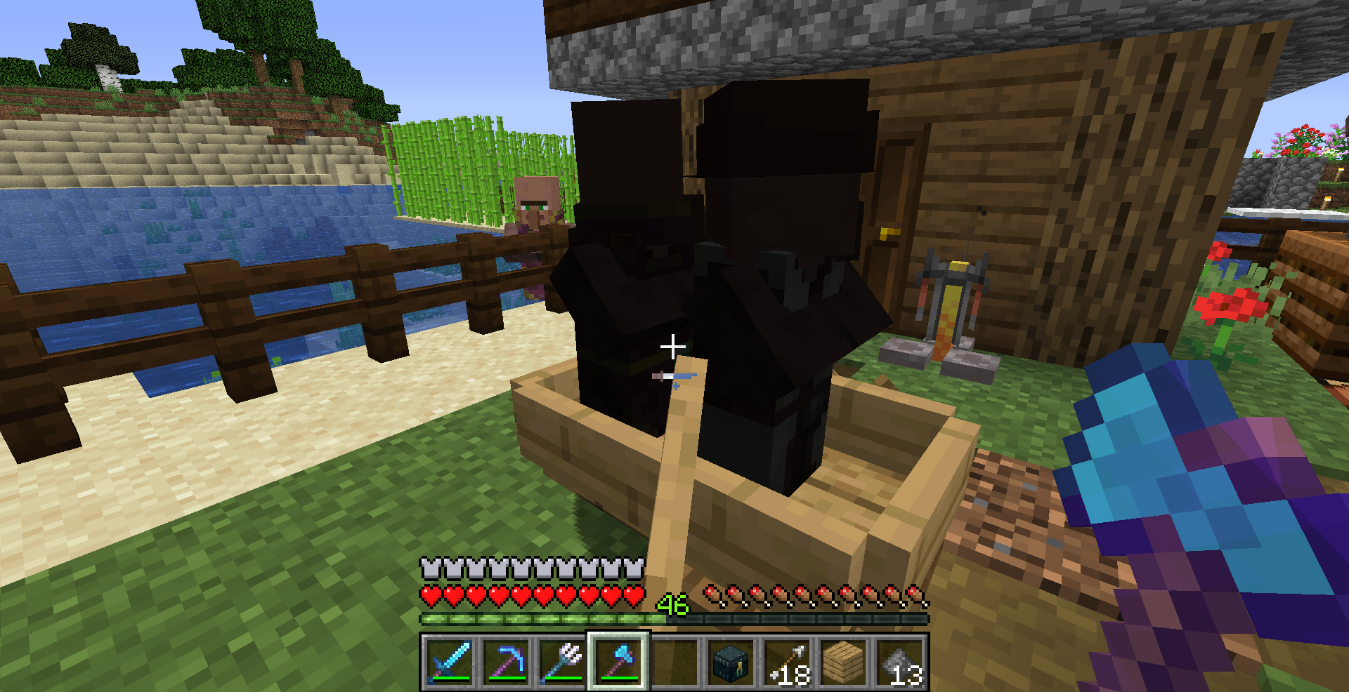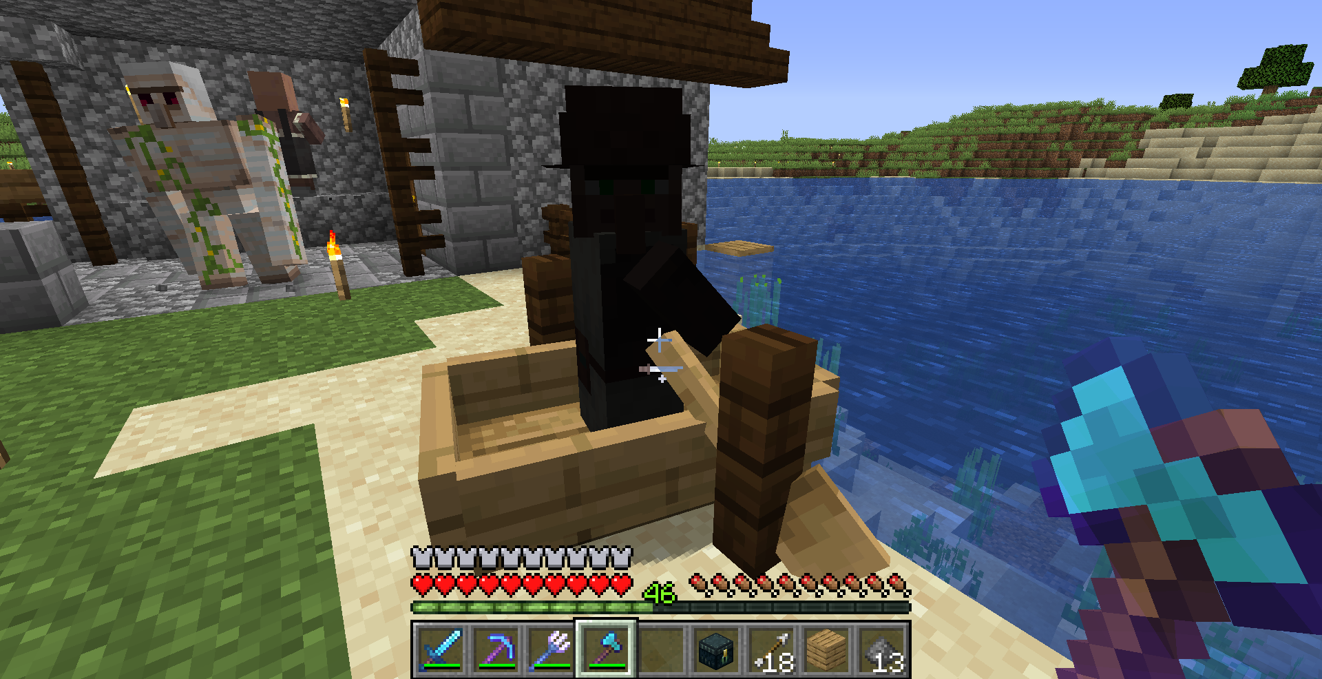 Villagers, Players and Items on hand appear dark when riding boat on land.