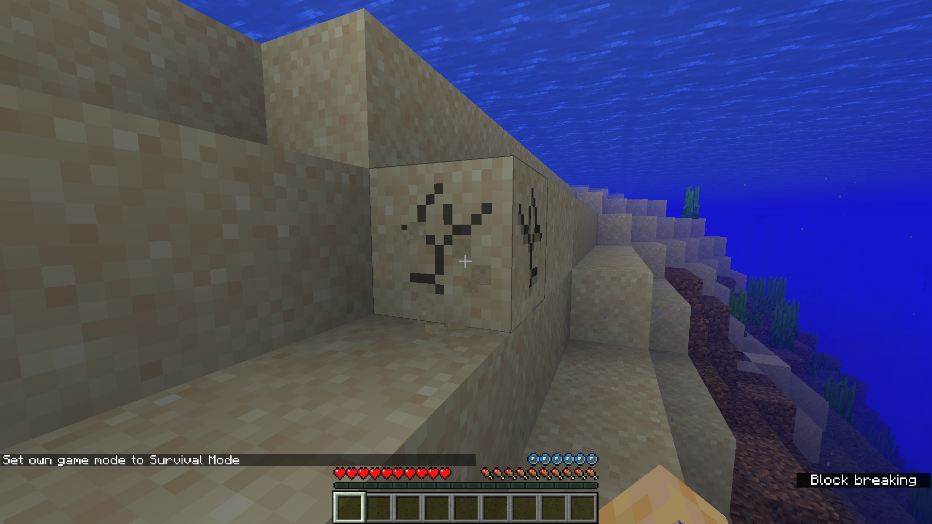 The breaking animation is missing when you punching a block, which is under the water. Interesting is, that you can see this animation if you are under the water too.