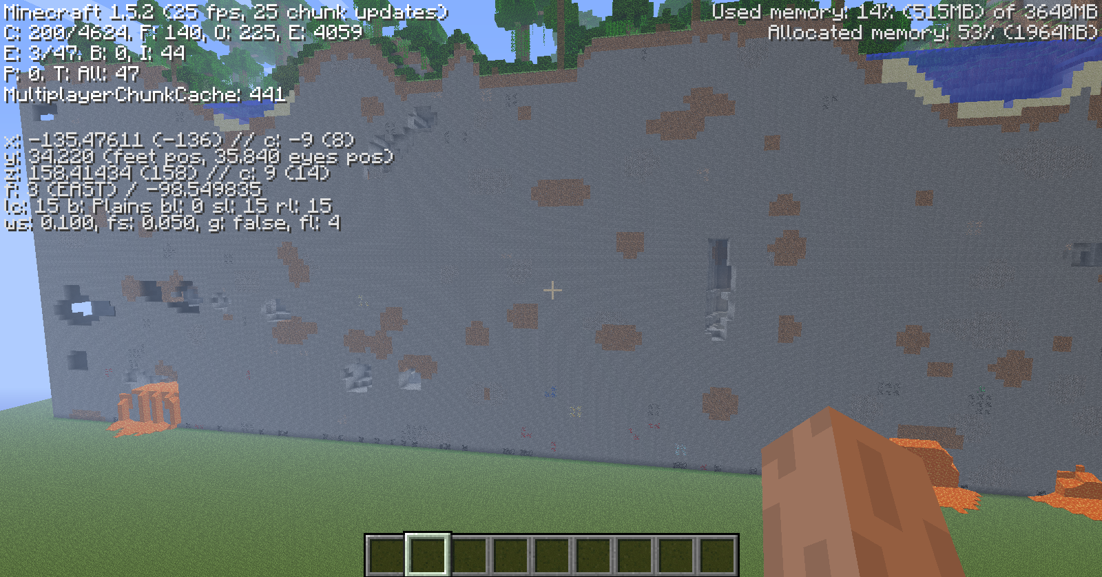 I left my world name as New World. Switched the gamemode to creative and hit enter. I generated really fast and i spawned on the super flat only to find in front of me the cut edge of a biome with all the ore and caves exposed