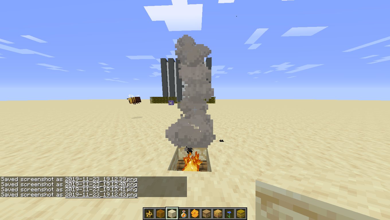 The smoke in the middle is stuck because i put a block above the camfire then quickly broke it.It stands in mid-air until it disappears.