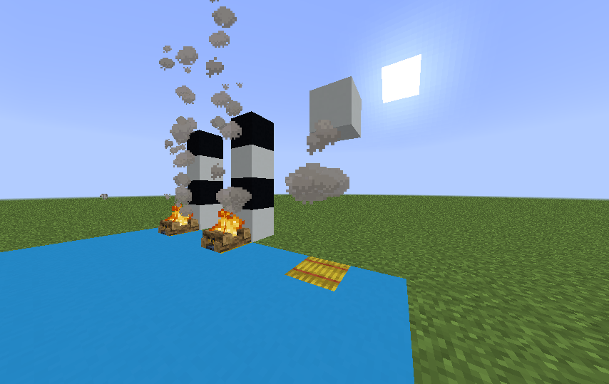 When any kind of obstacle is placed a couple of blocks over a campfire, the smoke clouds that accumulated under the obstacle freeze mid air after said obstacle is removed.