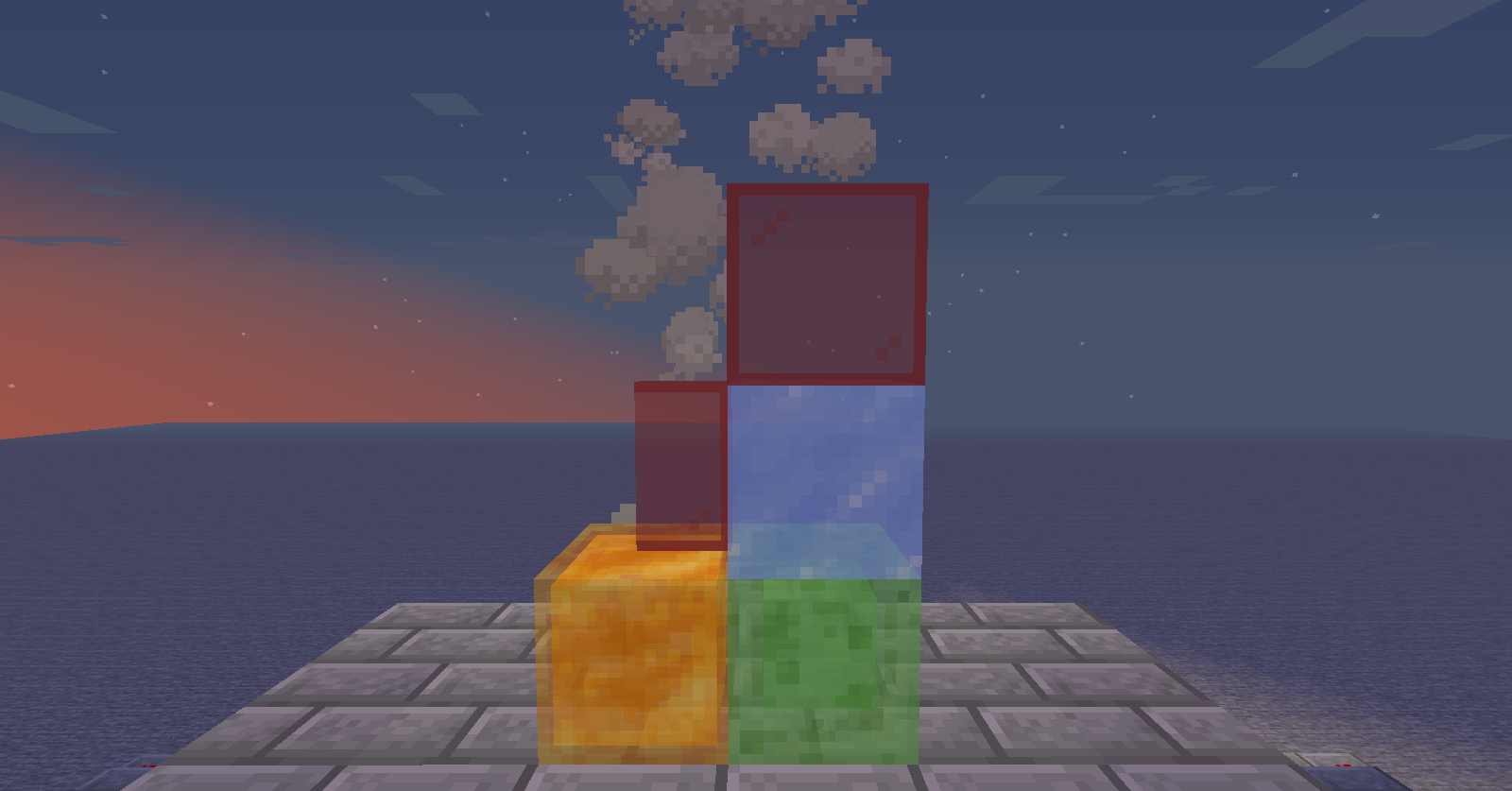 The smoke from the campfires isn't seen through glass, glass panels, slime blocks, honey blocks and ice.