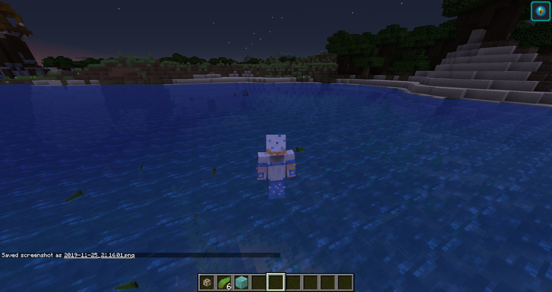 When the player is underwater, if you look above water with the third person view (F5 mode) with the conduit power effect, then the land is also bright as well as the top of the water.