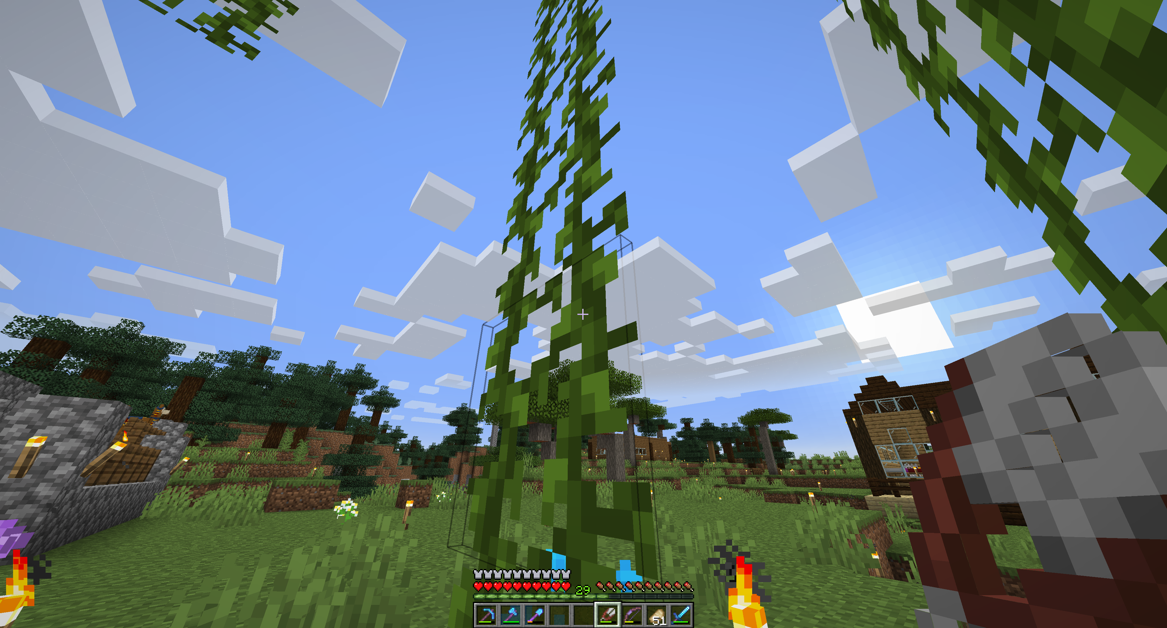 Block outlines / hitboxes render behind translucent blocks, such as clouds, regardless of distance.