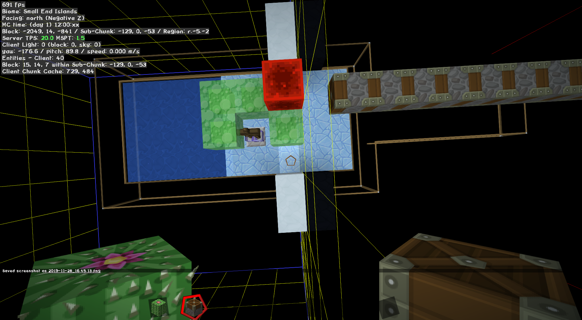 This was tested both on a local server running carpet mod as well as in a completely vanilla single player world. Attached screenshots are from the former.