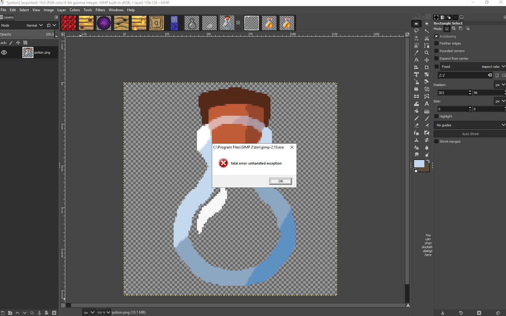 (2: repeats for lots of textures, alternates between 'corrupt jpeg' and 'out of memory')