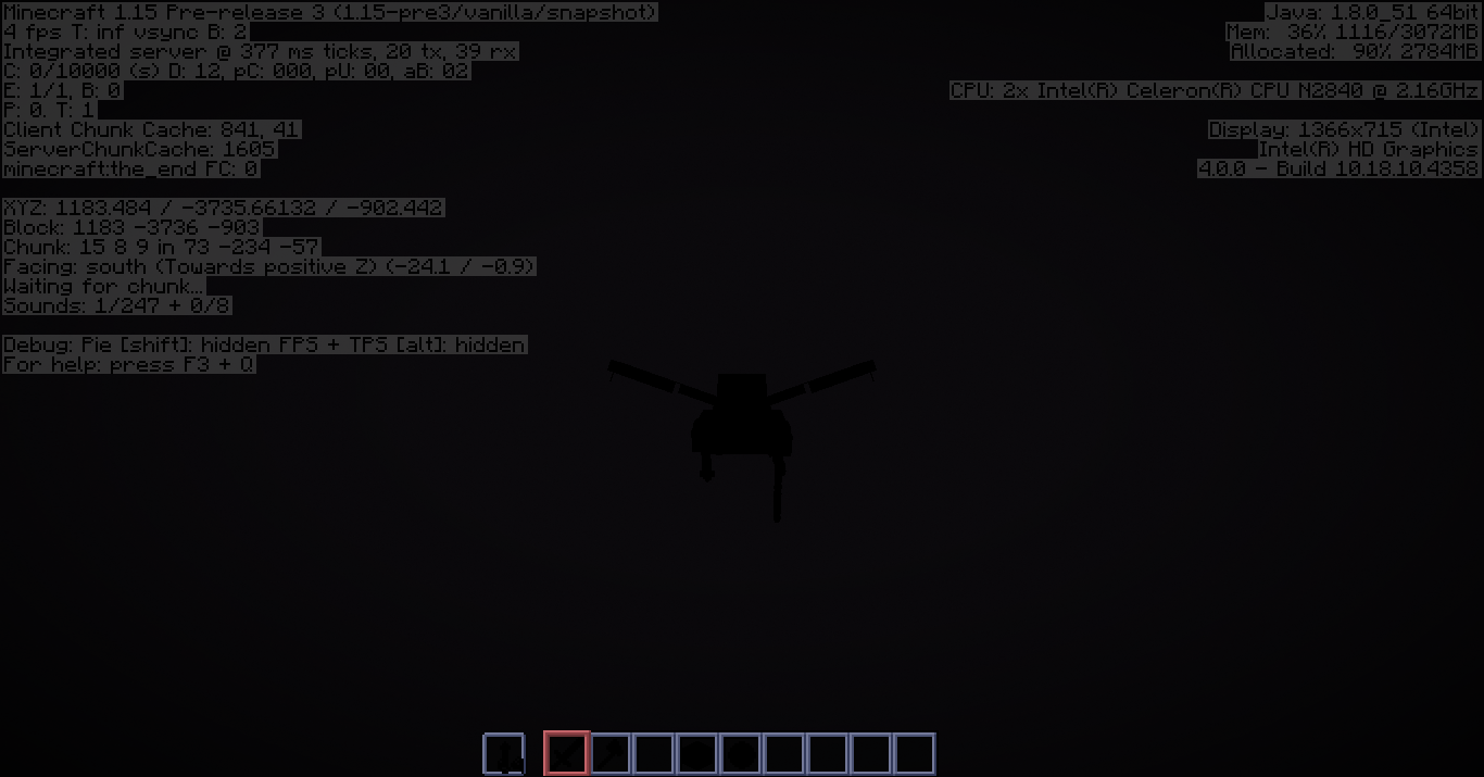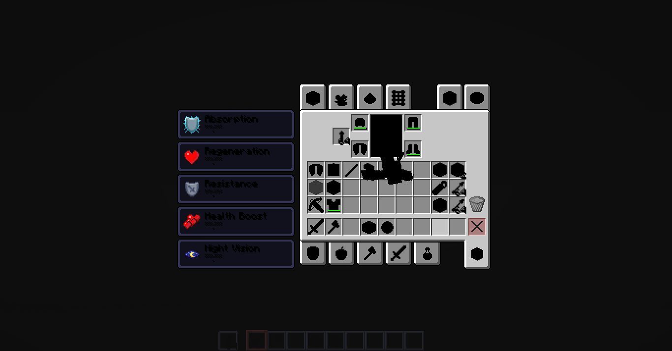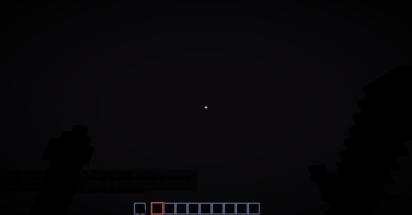 After falling into the void wearing the night vision effect, the player's model, mobs, items and the inscriptions on buttons and hats become black.