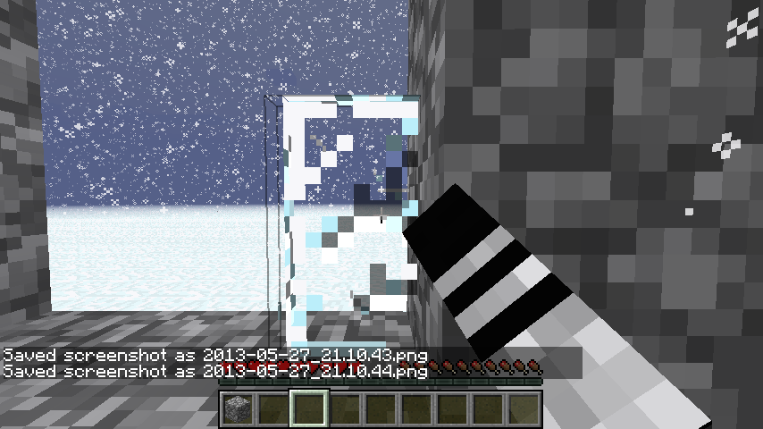 If you are breaking glass, you might notice that rain/snow is not visible through the cracking texture, while all other items behind it remain visible.