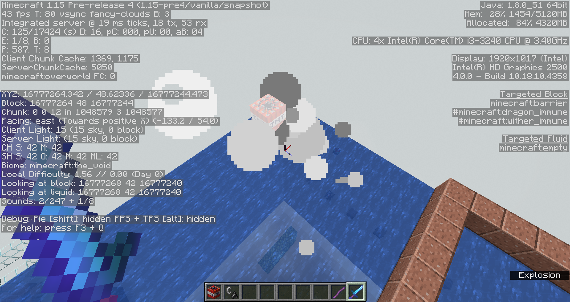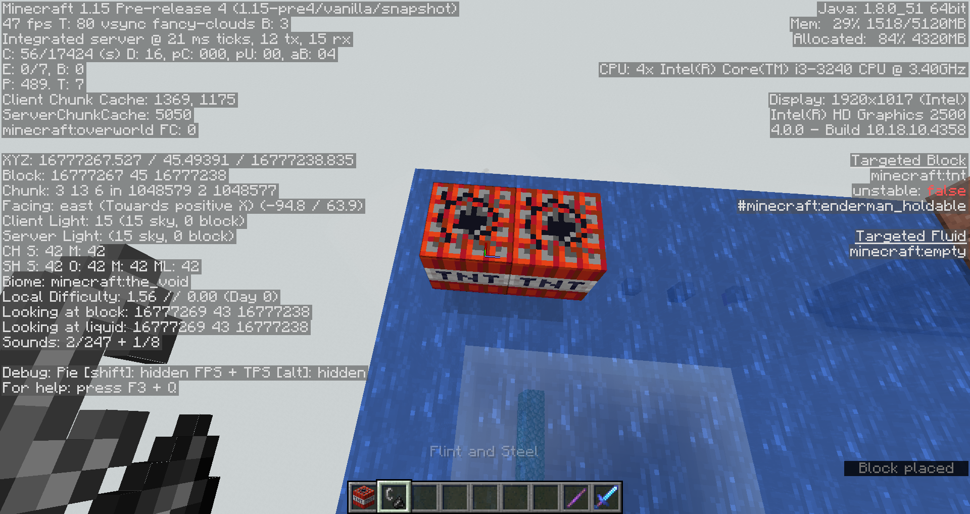 Since the code that primes TNT from other explosions is different from the code that primes it from held items, TNT primed from other explosions is still subject to high coordinate precision loss in this case.