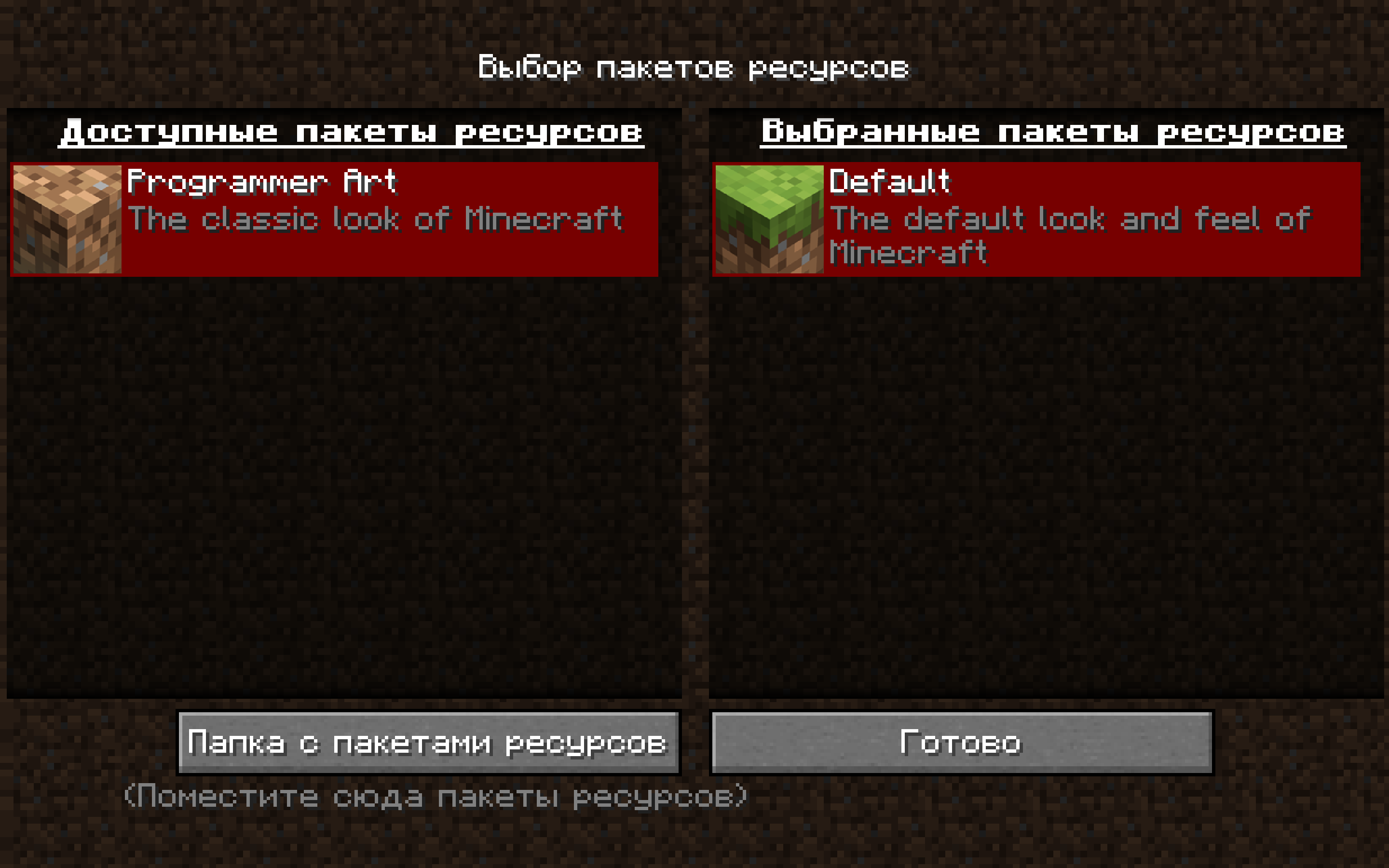 Still cannot reproduce. Please, tell me if the resource packs "Default" and "Programmer Art" are colored red, and their description saying "Incompatible (Made for an older version of Minecraft) "? In which the game thinks that the textures are outdated.