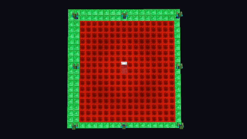 If any zombie moves from the green emerald block to any red redstone block, the player will not be able to sleep and will receive the message "You may not rest now; there are monsters nearby"