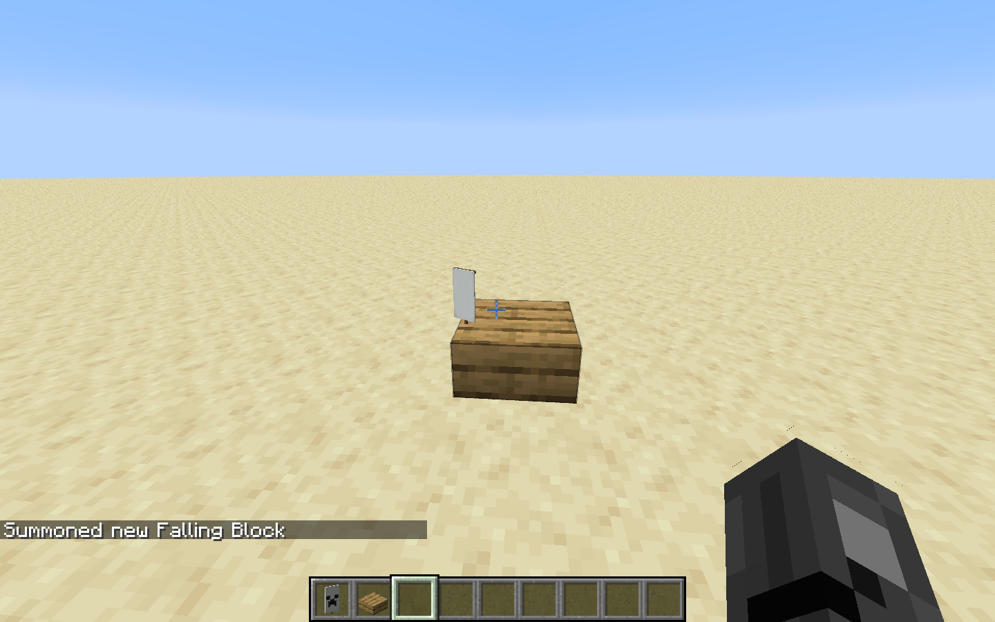 /summon minecraft:falling_block ~ ~ ~ {BlockState:{Name:"minecraft:white_banner"},TileEntityData:{Patterns:[]},Time:1}