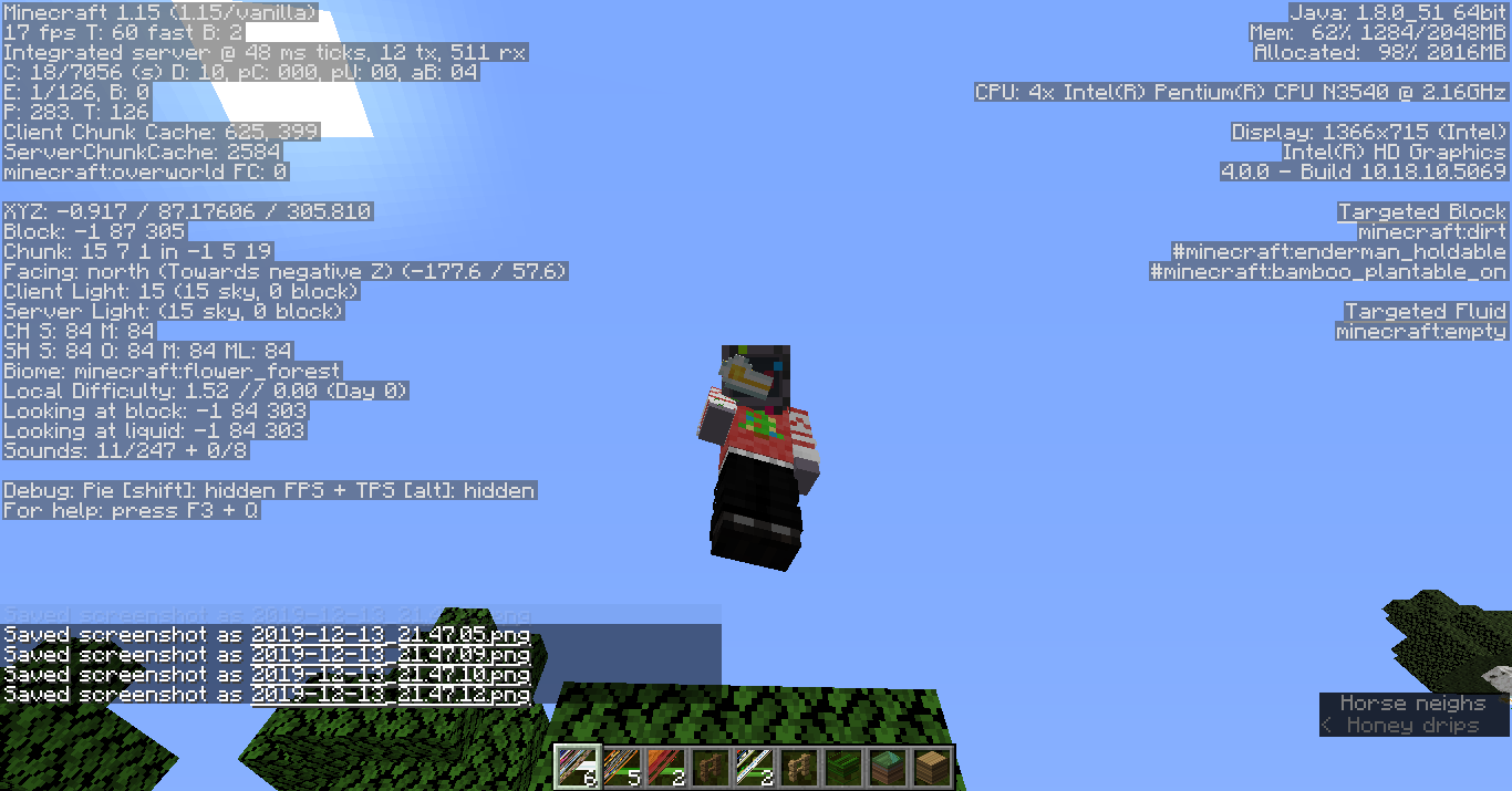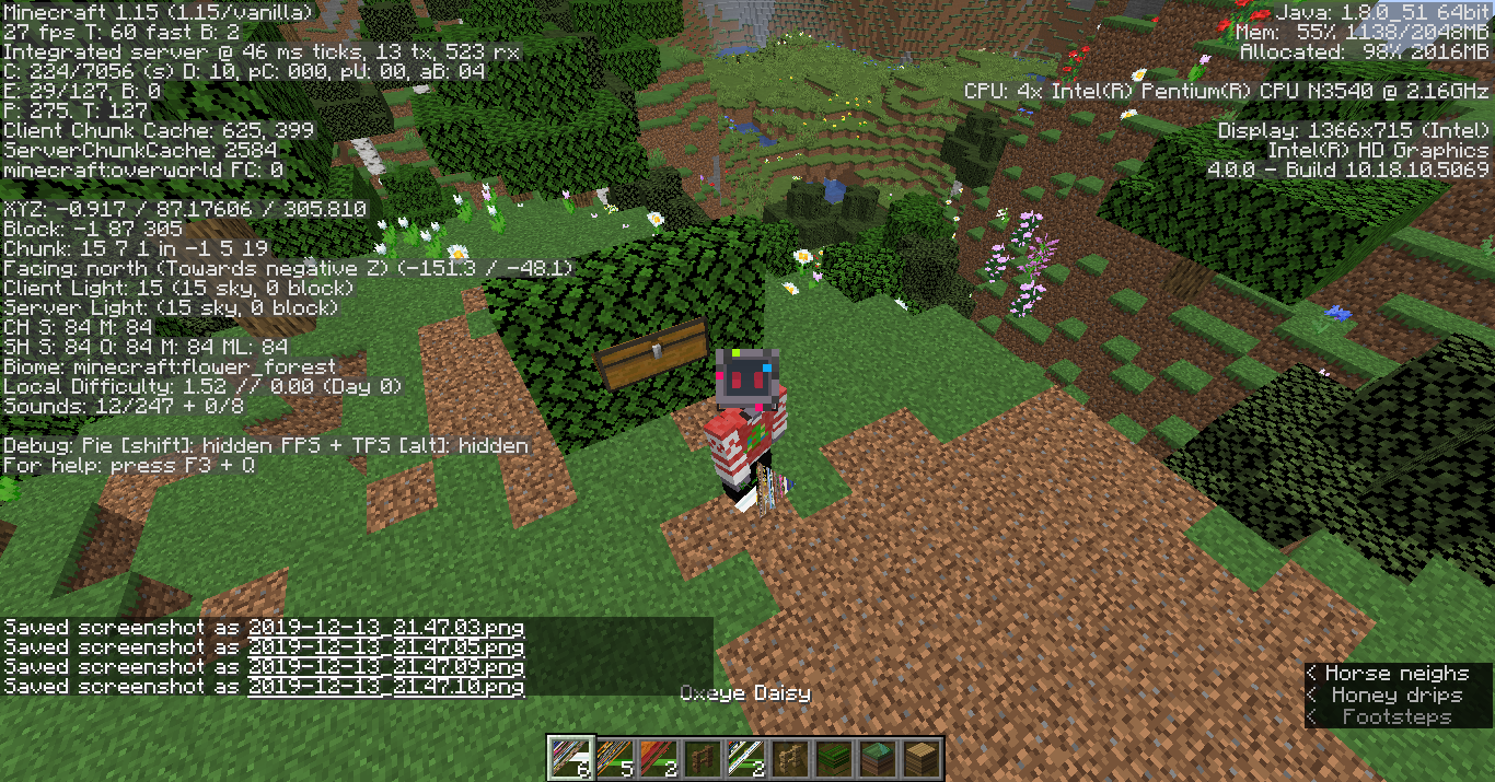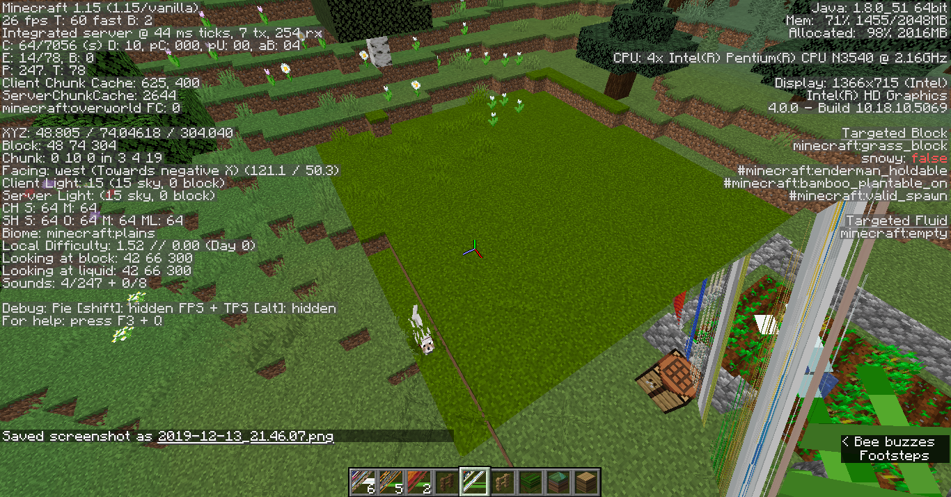 Simply, I was switching gamemodes in my new 1.15 world. I'd already collected items, and at some point, I looked down to find my textures were completely warped akin to something from the far lands, after I had shoved everything from Survival into chests. It didn't only affect 2D textures like the inventory item textures, but the block textures as well.