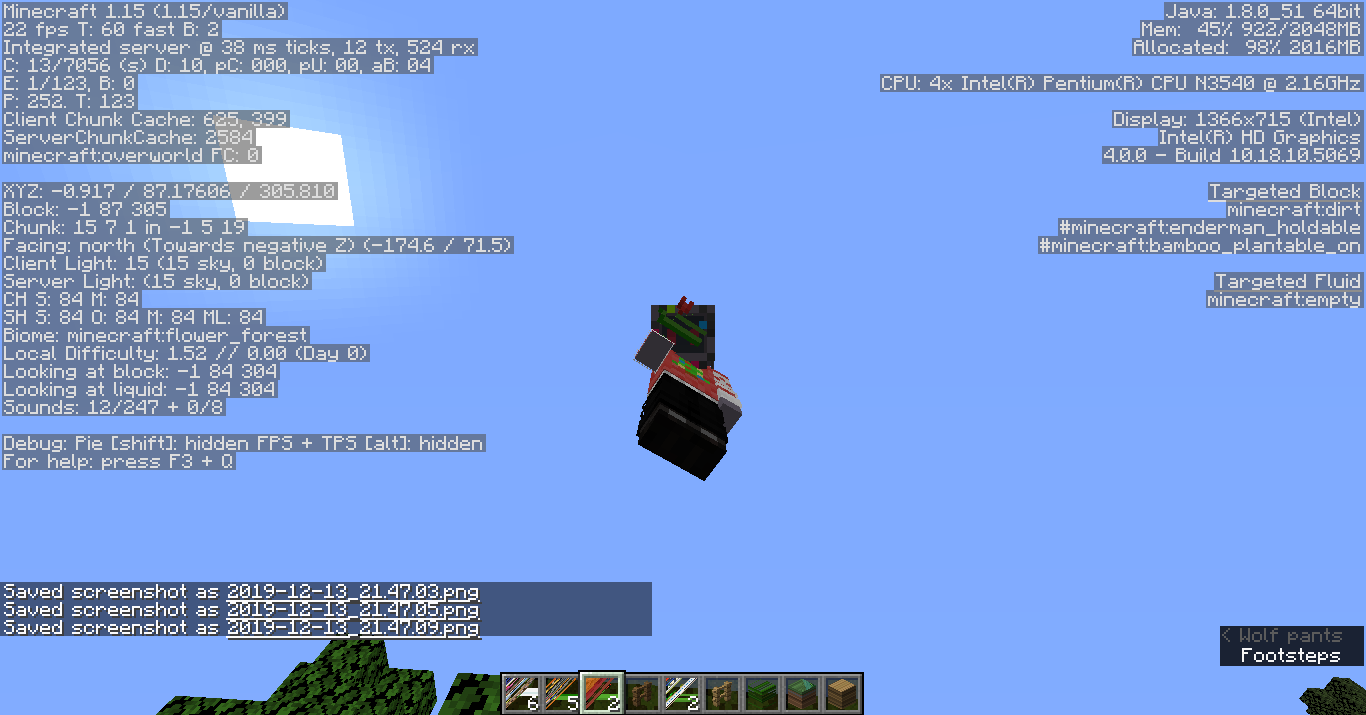 Not pictured is that when going into the Creative index of all items, almost all of the textures were warped in a similar fashion. Diagonal to the top left, almost all the pixels.