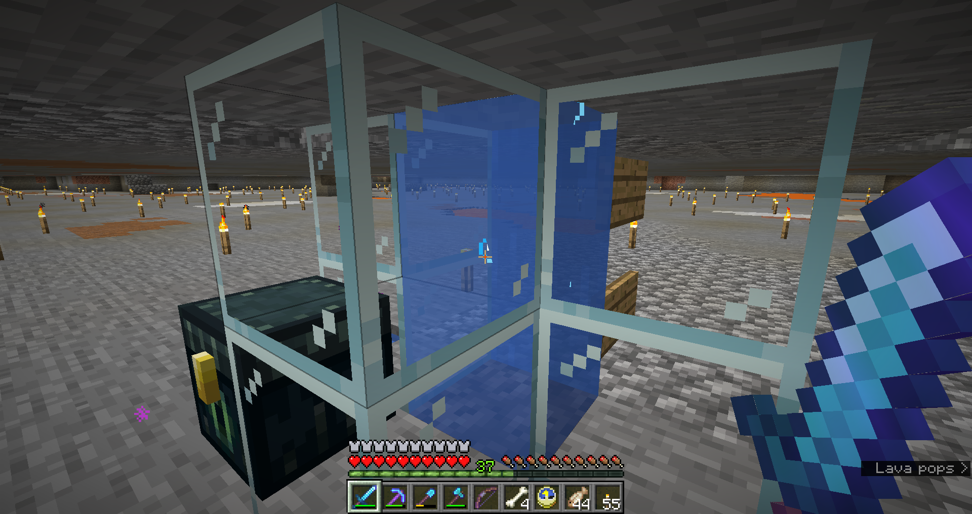 using either a soul sand or a magma block to create a water elevator column does not have visible water bubbles even though the bubbles are there.
