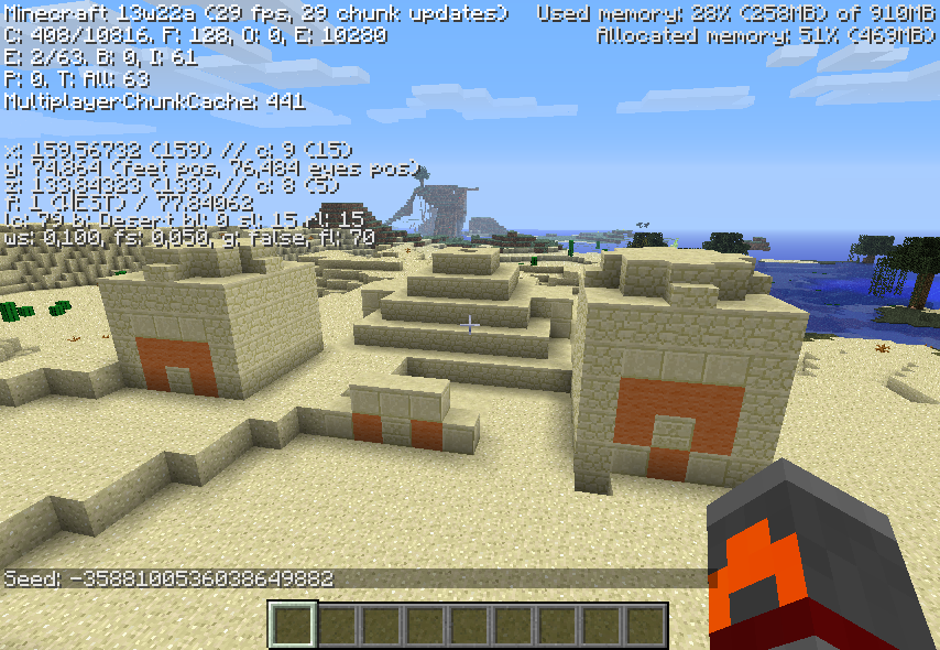 Crash while flying around in creative near desert temple.