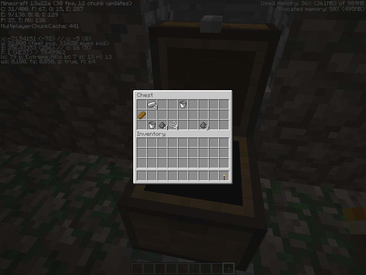 After i posted the report i turned the game back on and it runs fine. I searched for the chest and all the stuff that supposed to be in it was not (look picture).