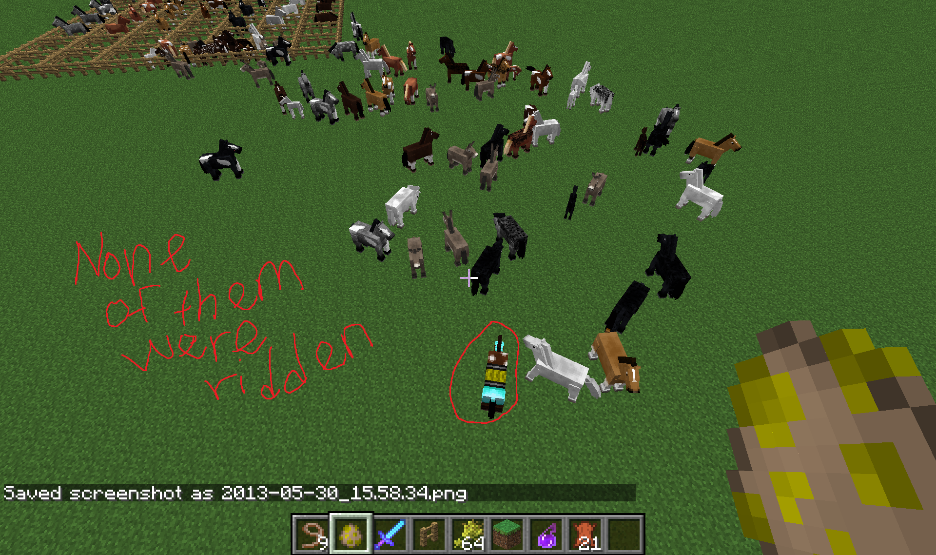 When spawning Horses, some spawn with armor, and the armor cannot be removed. Unsure whether or not the armor offered protection, or if it was a texture error.