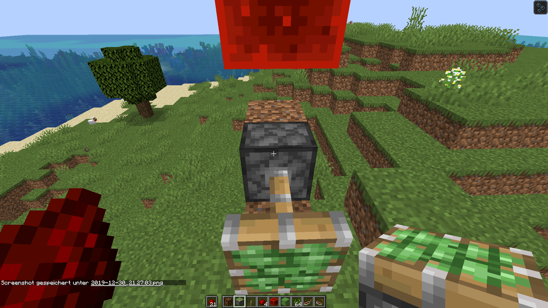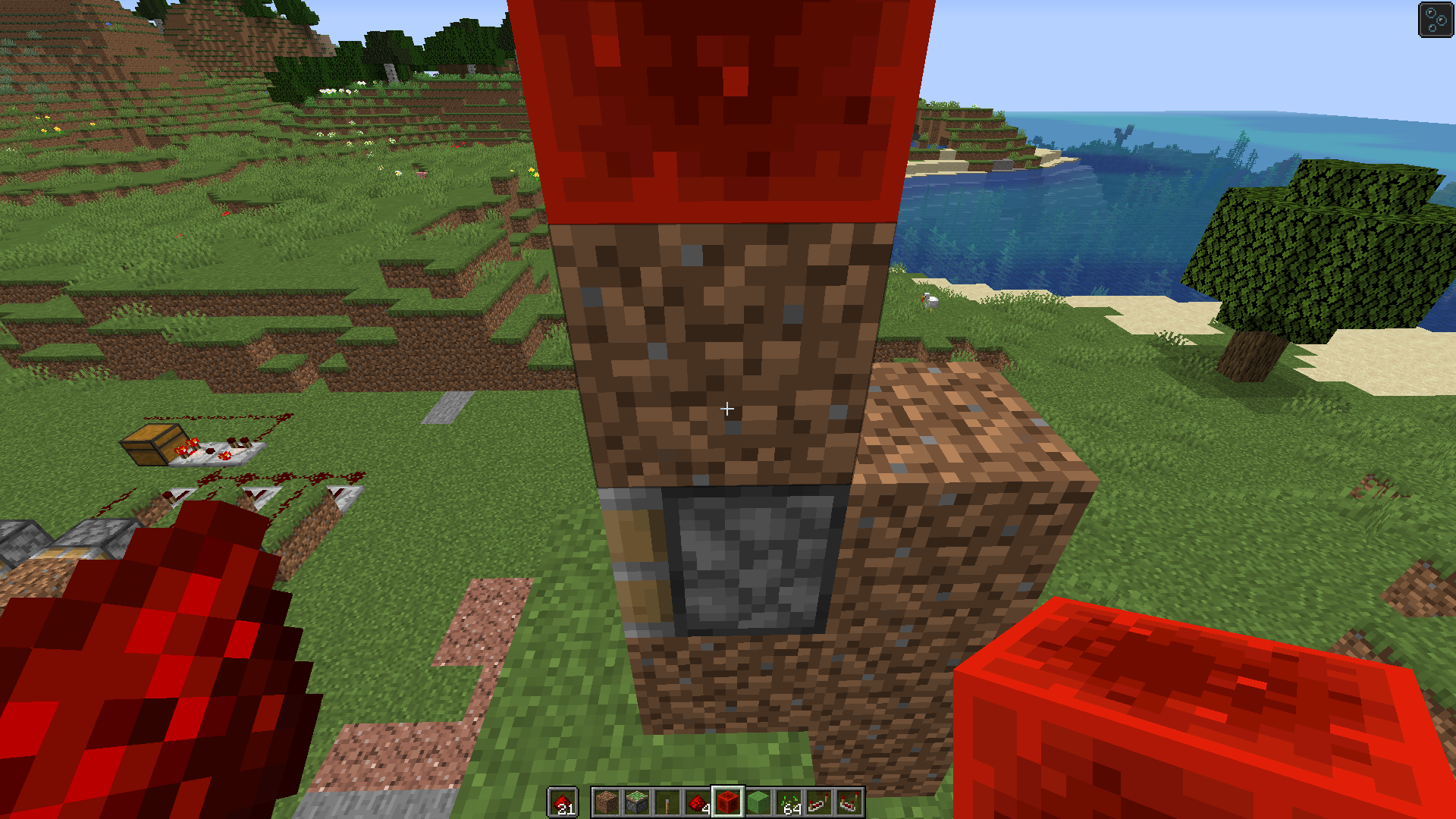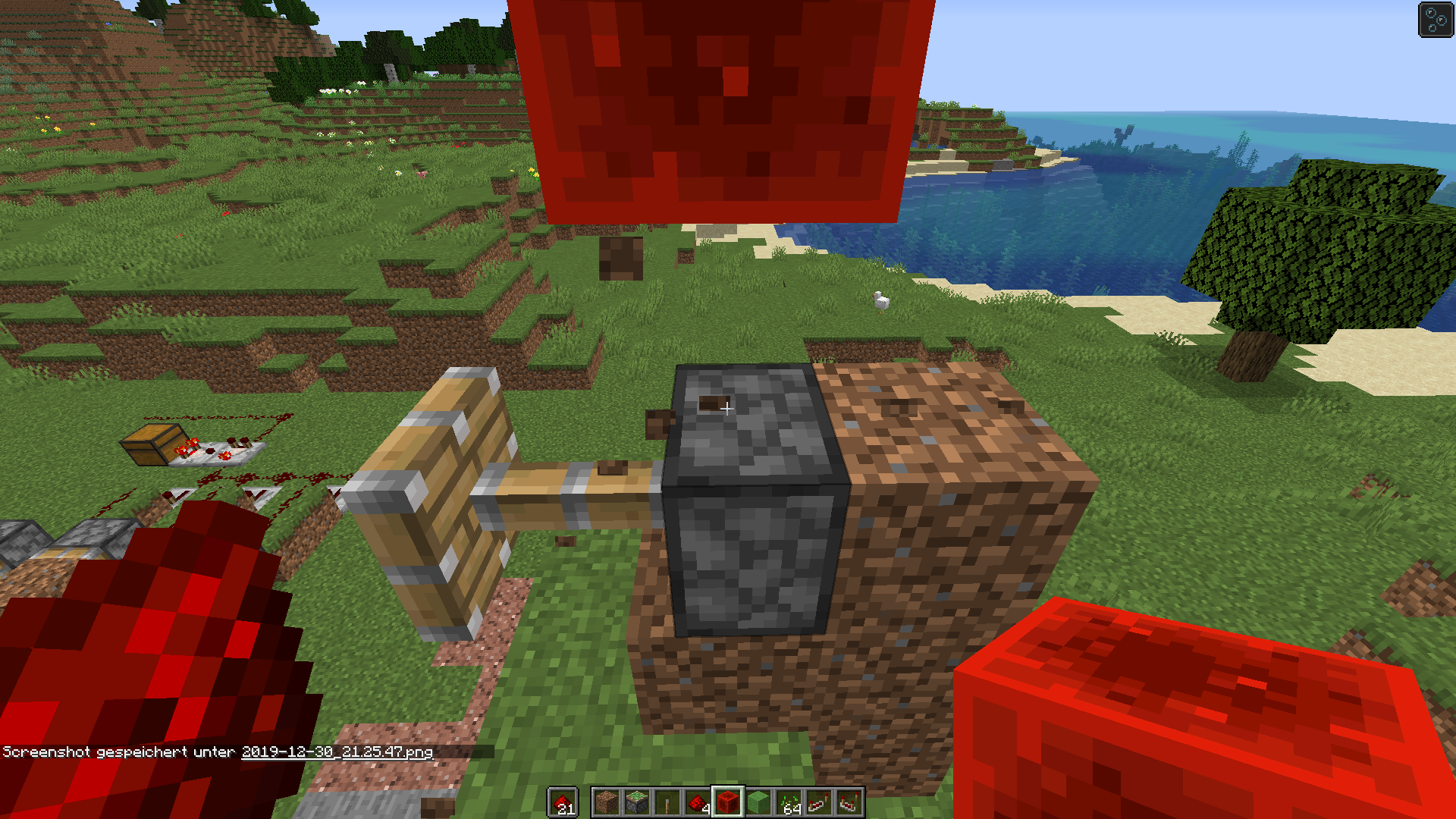 Same problem if putting the redstone first without earth into the air and put the piston next with getting no contact. (Pic3 and Pic4)