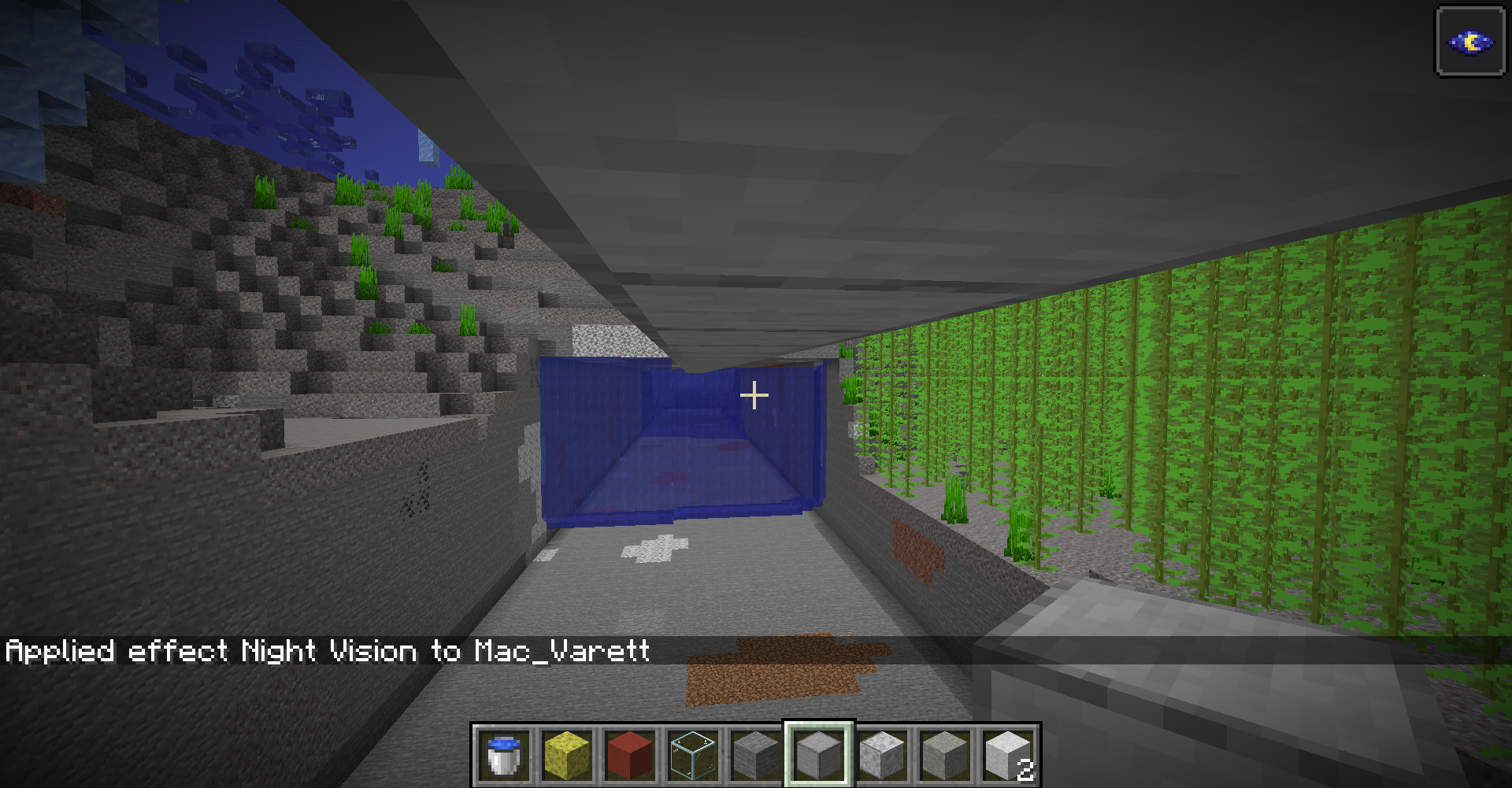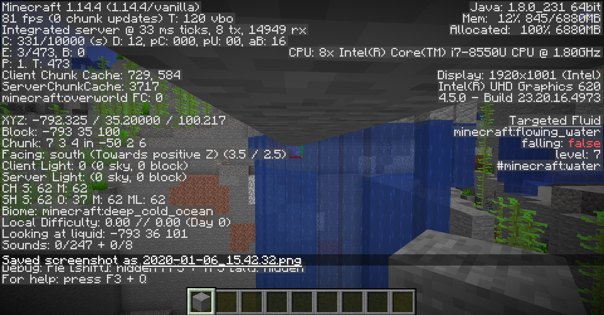What I expected to happen was building under water a tunnel and when I was bellow some blocks that had water above the block and bellow and when you stand bellow the blocks is showed incorectly underwater textures.