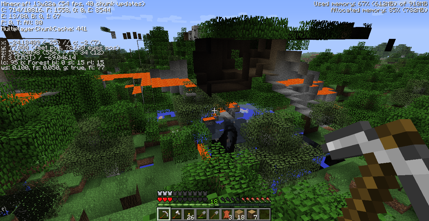While exploring the world, odd floating errors(such as the one shown in the screenshot) occur. I do not believe it is my system, unless I'm having graphic card problems, as it has never occurred until I installed the snapshot. I am using the in-development launcher that is available for download on the Mojang site.