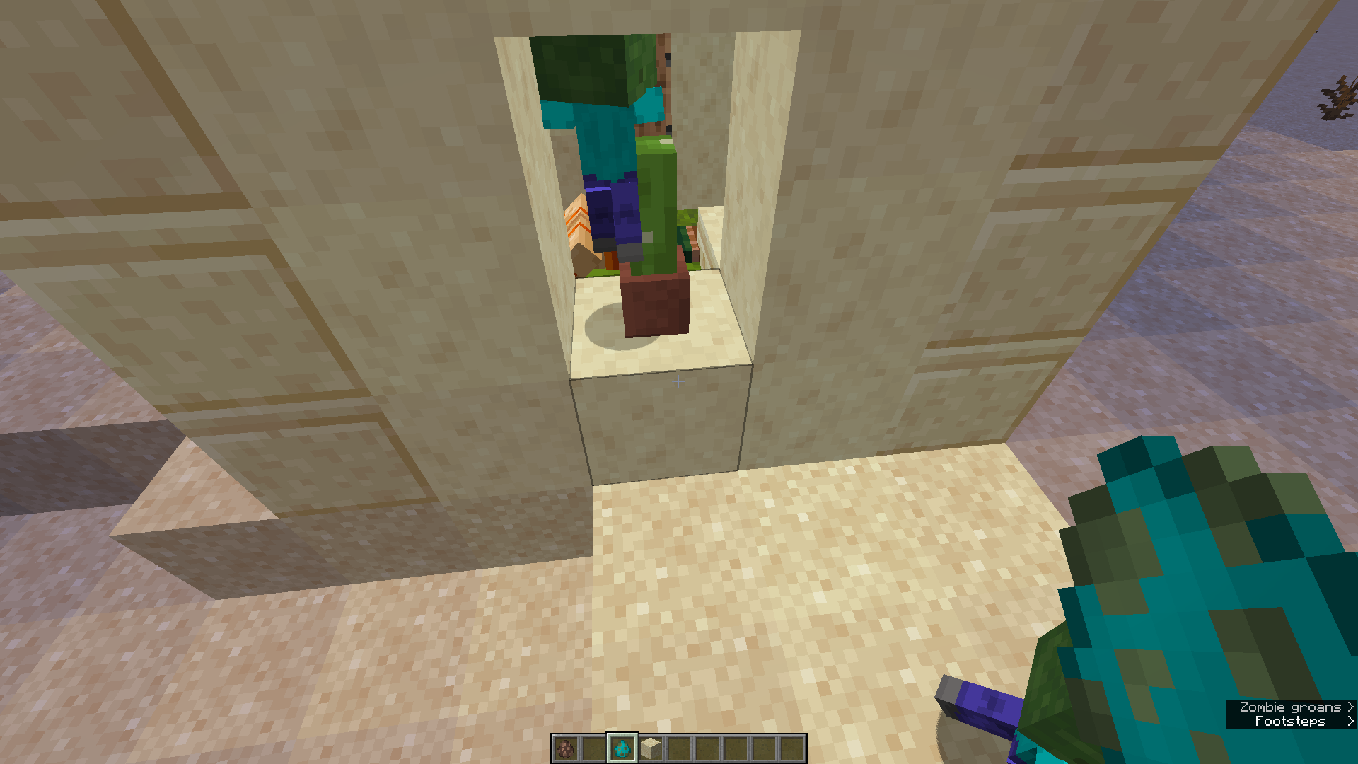 Spawn a baby zombie outside the house in front of the window