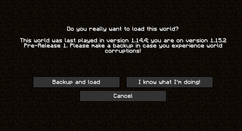The World Selection menu doesn't put up the warning message regarding older versions of the game/world, potentially allowing a misclick to damage an existing older world.