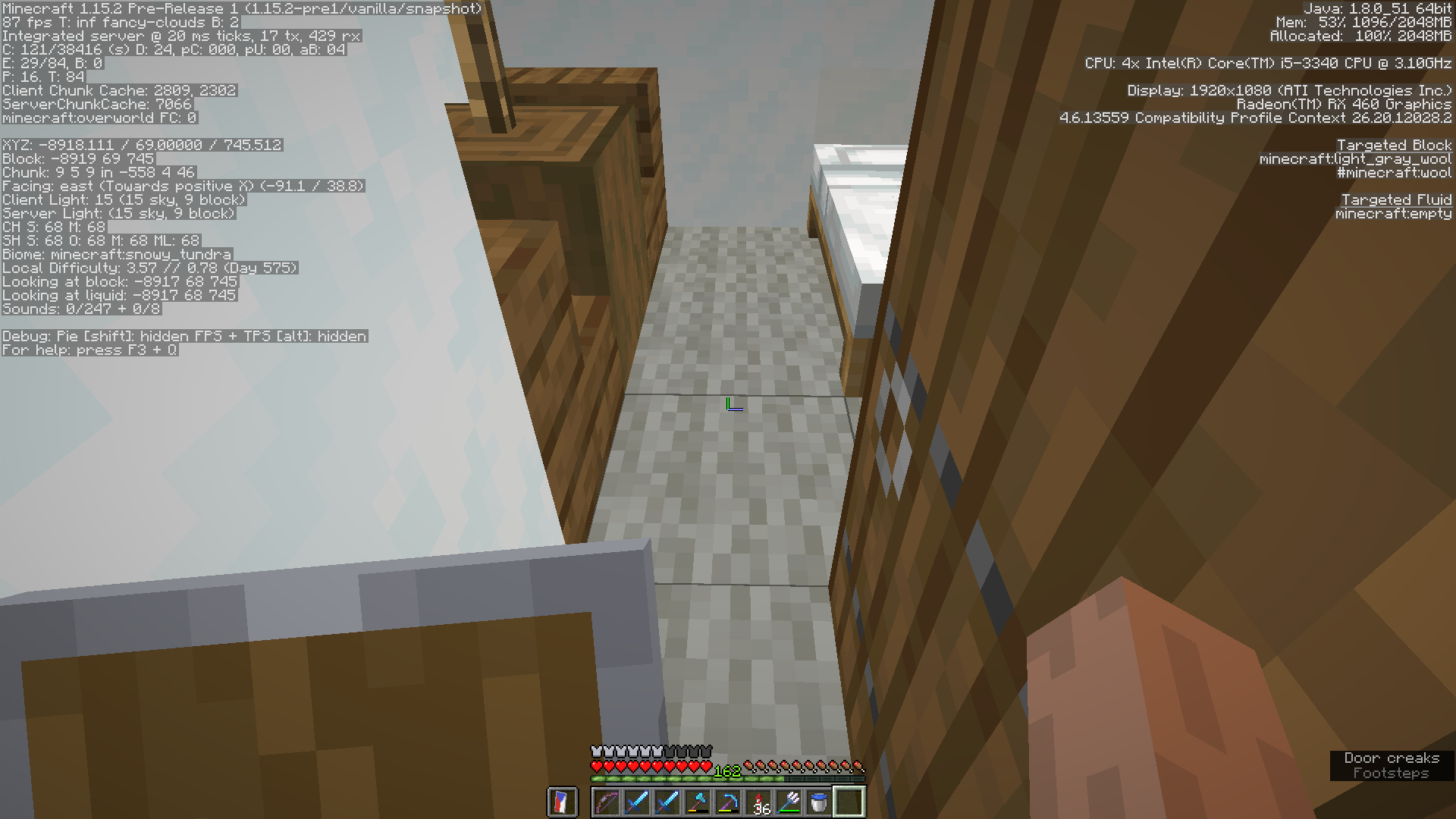 At the center of the house, there is dirt instead of light gray wool. This is caused by the jigsaw block's "Turns into" being set to "minecraft:dirt" instead of "minecraft:light_gray_wool."