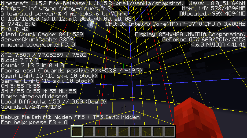 Observe that the block light value is still 15. This is actually not directly the bug we are after. This part of the issue will disappear upon reloading the world or triggering some block light update. We will come back to this later.