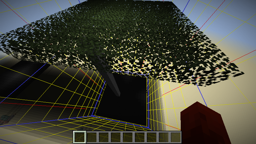 1 6 1below the holeOn its way down, the light will now see the leave blocks and correctly incorporate them into the result. As subchunk {{ 1 5 1}} doesn't have a lightmap, the skylight optimization will kick in and simply copy down the light values from subchunk