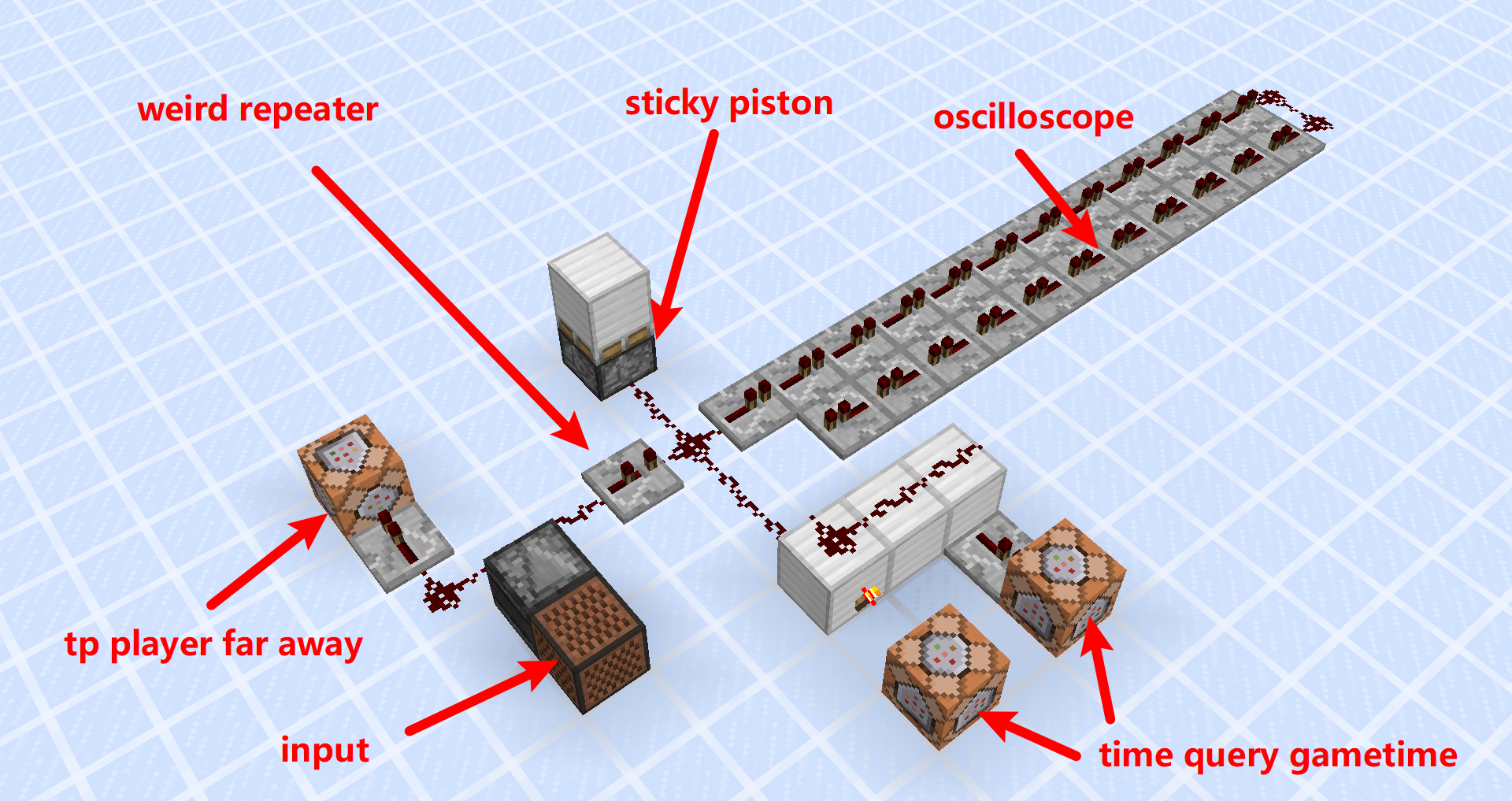 In 1.15.1, there's a possibility in the setup below that the 2t(2 redstone tick, or 4 game tick) repeater could emit a pulse with wrong length. It might emit a 1t(2gt) pulse instead of 2t(4gt). What I supposed to see: everytime when I trigger this setup and reload these chunks, I will get a 2t repeater emiting stable 4gt length pulse