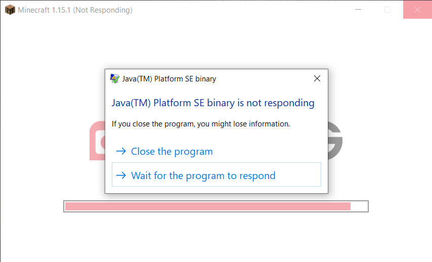 Hello, I can't play Minecraft. It says java platform SE binary not responding. Tried everything and nothing works. Haven't been able to play for about 2 months