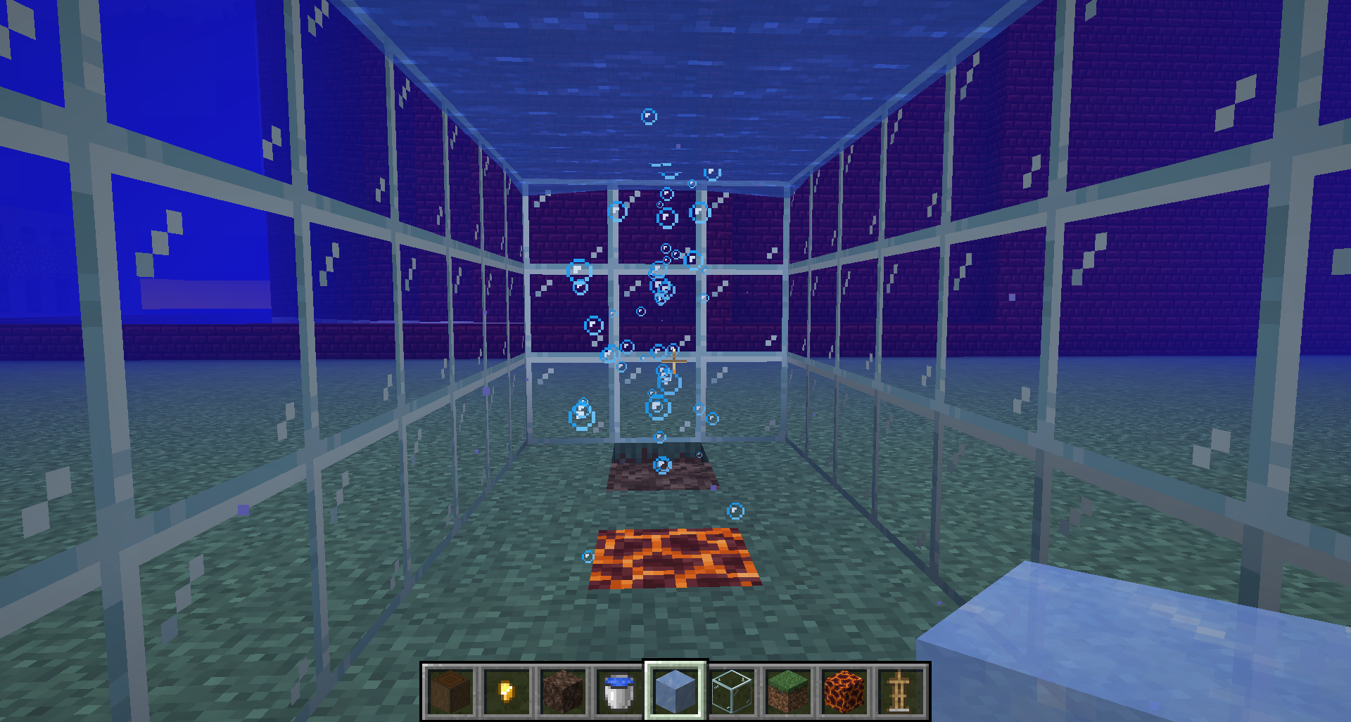 As it is described in the headline, you cannot see any particles in the water once there is glass in front of it.