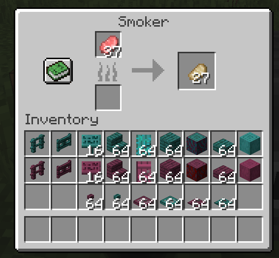 While signs, stairs, doors, planks, slabs, buttons, trapped doors, and pressure plates of warped and crimson wood can be used as fuel in a smoker, furnace, or blast furnace, fence, fence gate, stem, and stripped stem cannot.