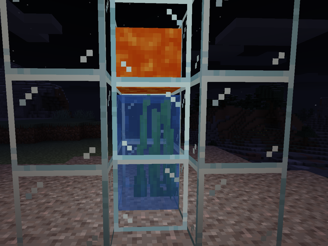 When lava is placed on the water where there is seagrass it does not break the water block and place a stone block.