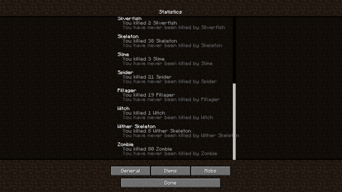 Statistics of killed mobs sometimes breaking through the boundaries of the list.