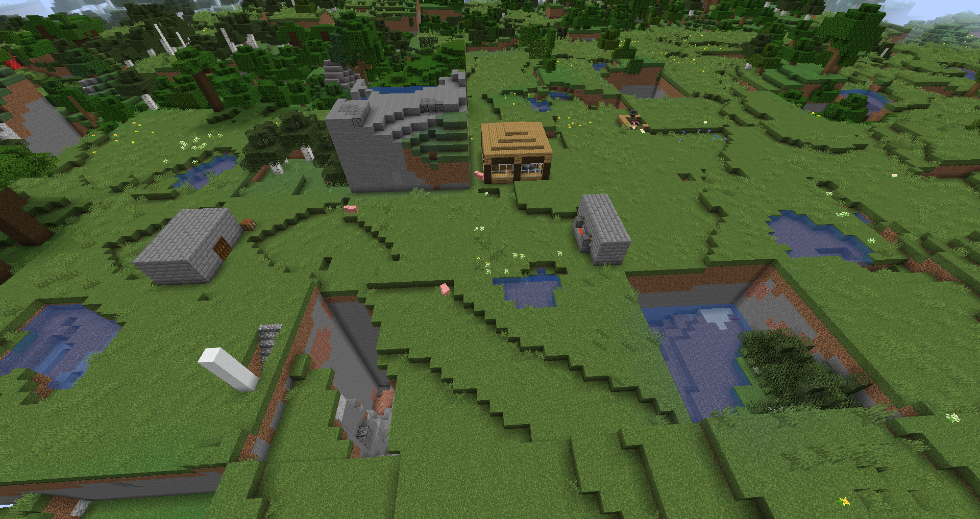 I reloaded my world, and all of a sudden certain chunks had completely changed. As seen in the pictures, it seems that chunks have been copied to other chunks or something like that.