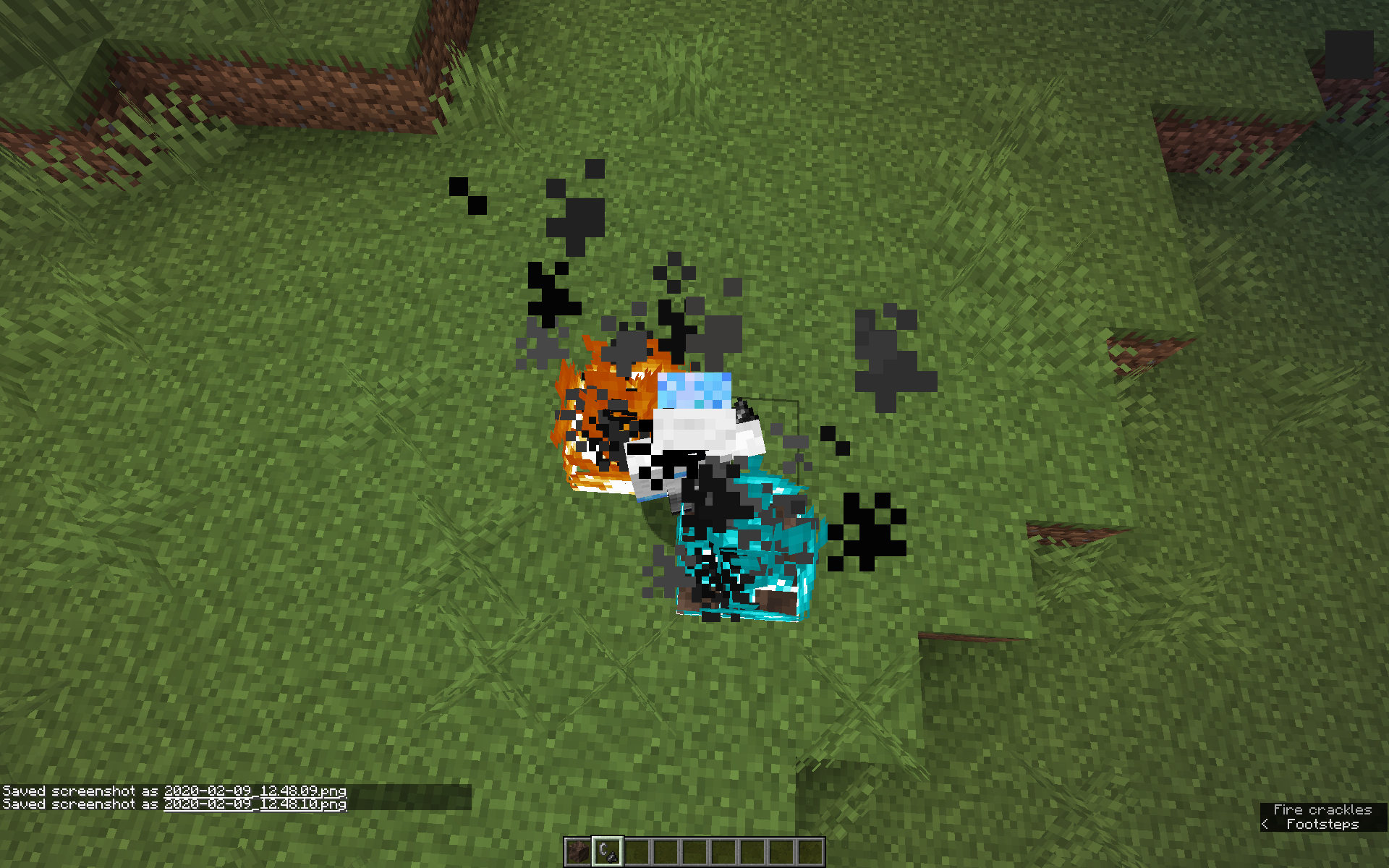 When standing in the middle of blue fire and normal fire while in creative there is a chance you can catch on fire.