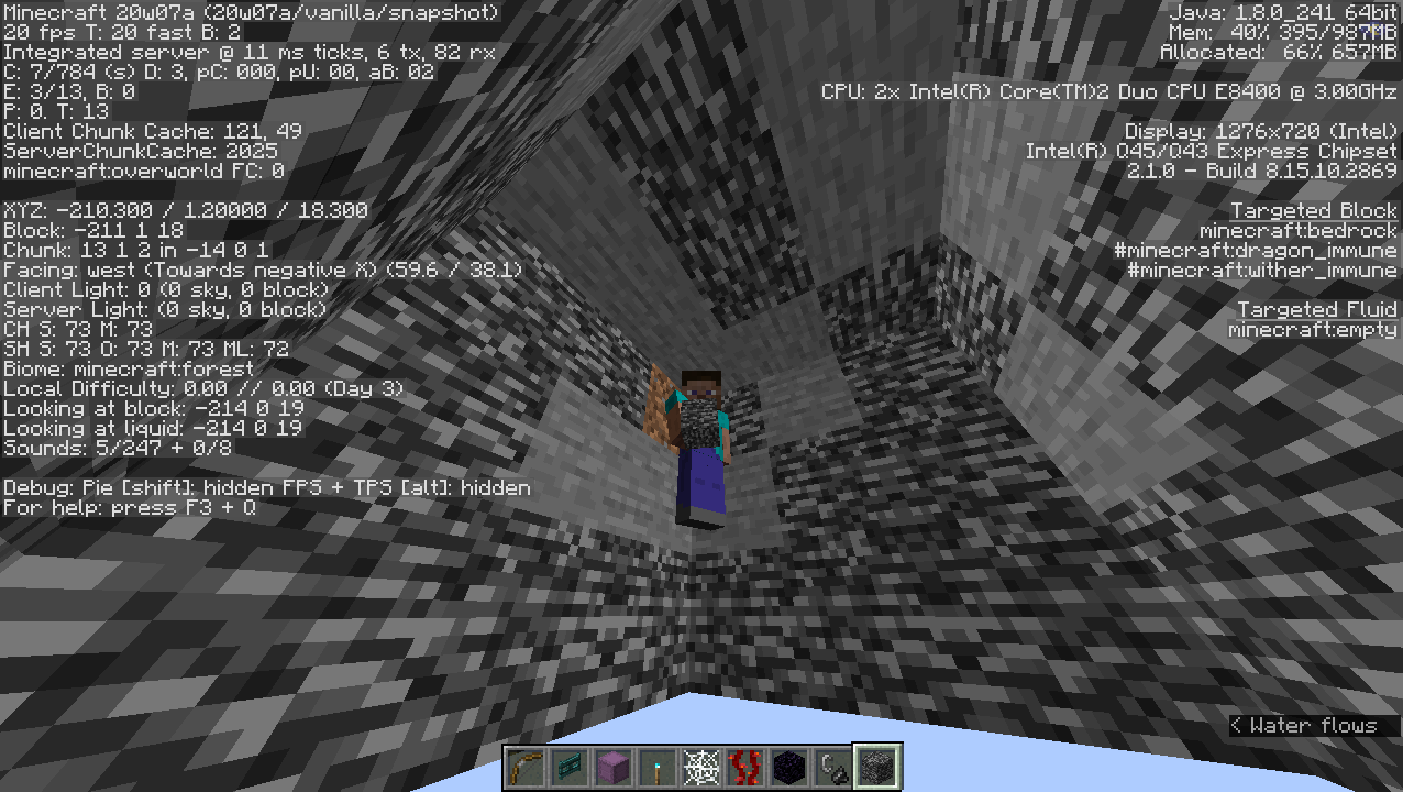 As the title says, everything renders black, even text, when the camera (the player position is not important) is under y=0 and you have the night vision effect in any dimension. If you exit to the main menu while it happens, it keeps happening on the main menu. Once you enter any world with the camera above y=0 or move the camera above that level, everything is rendered correctly.