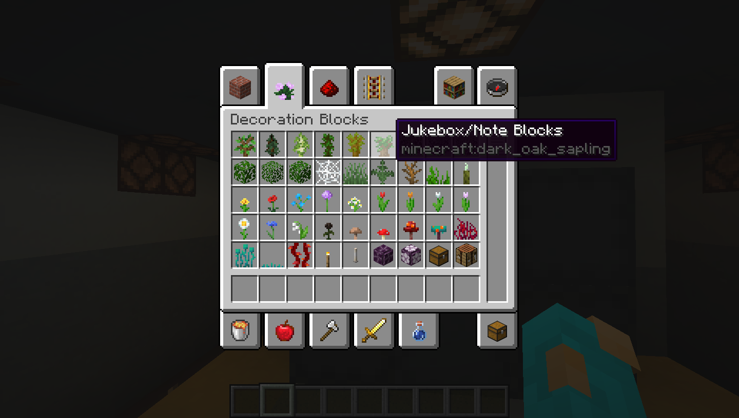 Dark Oak Saplings appear to be named "Jukebox / NoteBlocks"