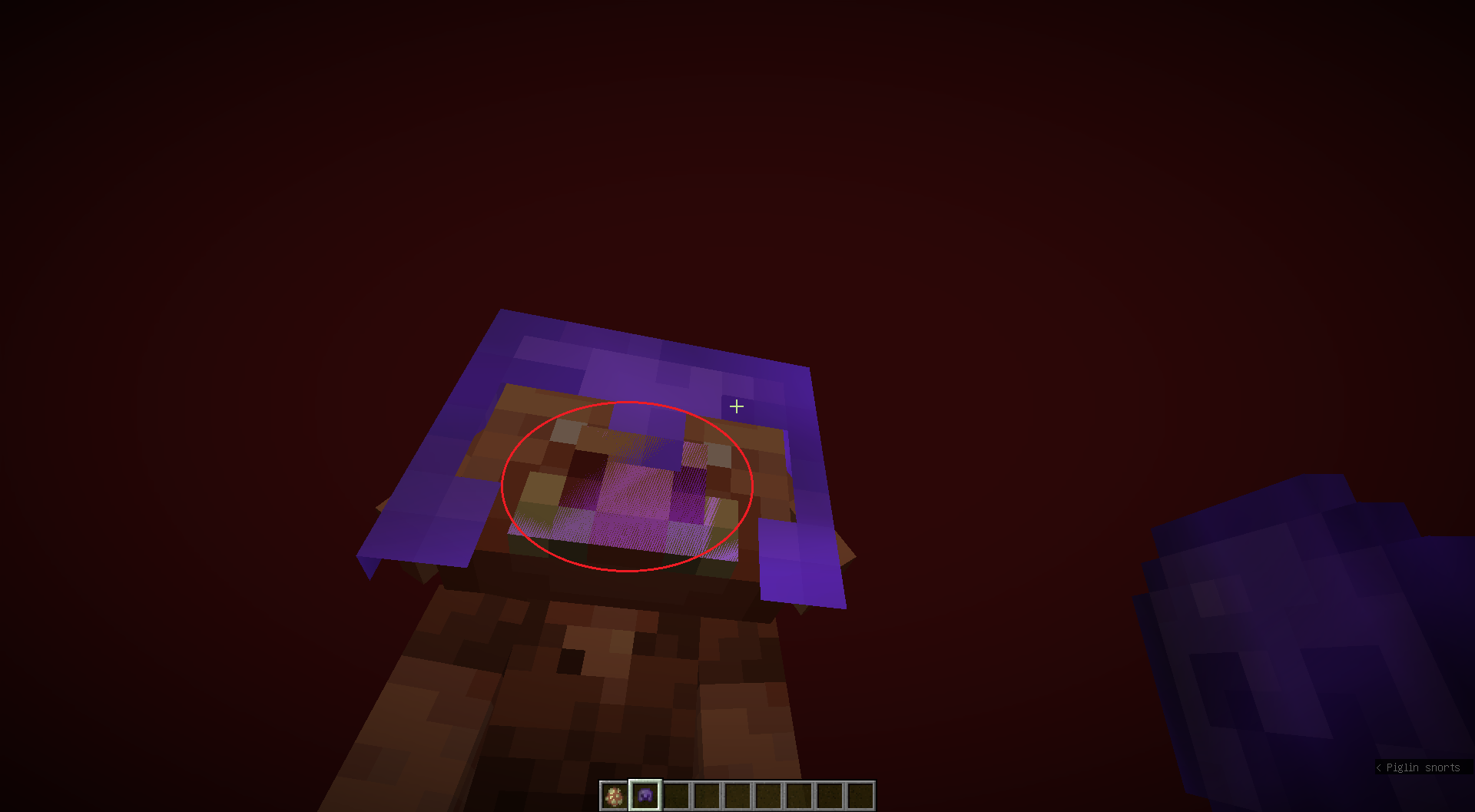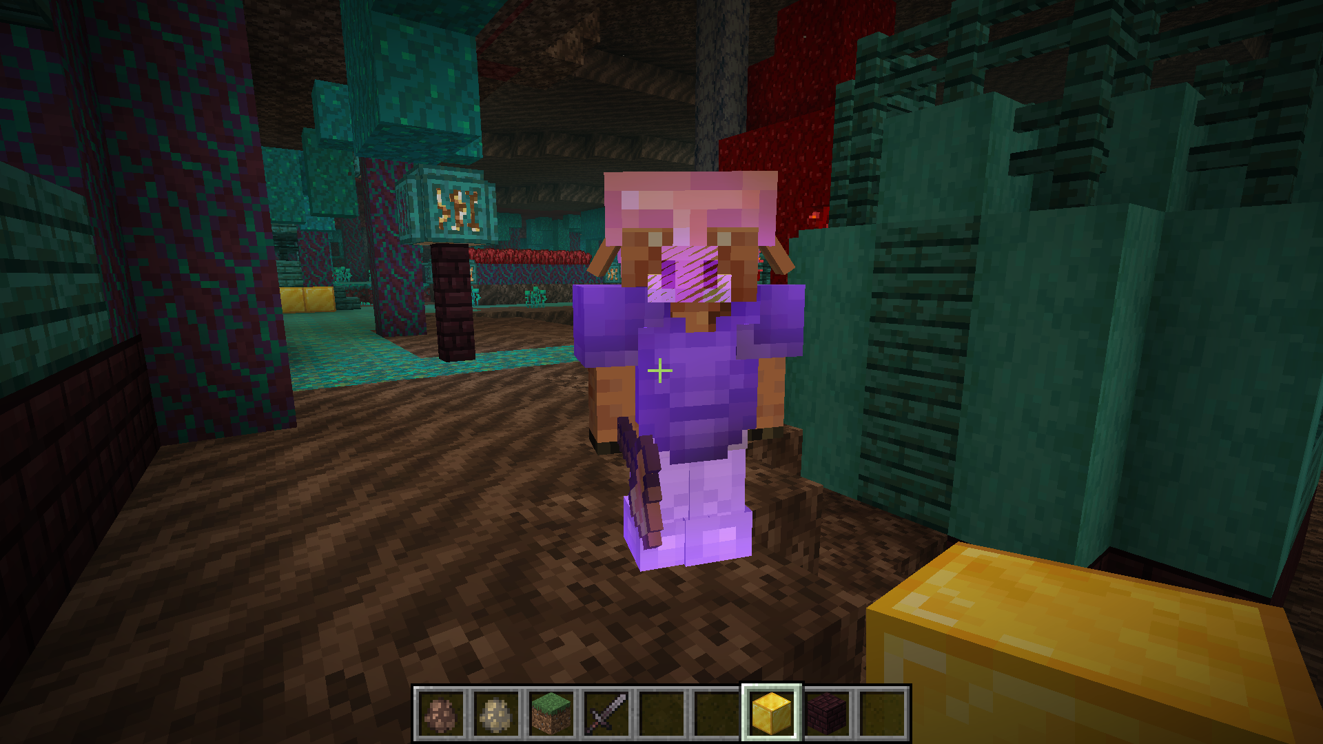 The Piglin's snout and tusks glow when wearing an enchanted helmet