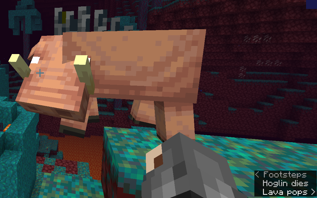 The localization has the line " subtitles.entity.hoglin.death": "Hoglin dies" which should be displayed in subtitles when hoglin dies, but it is displayed when he walks.