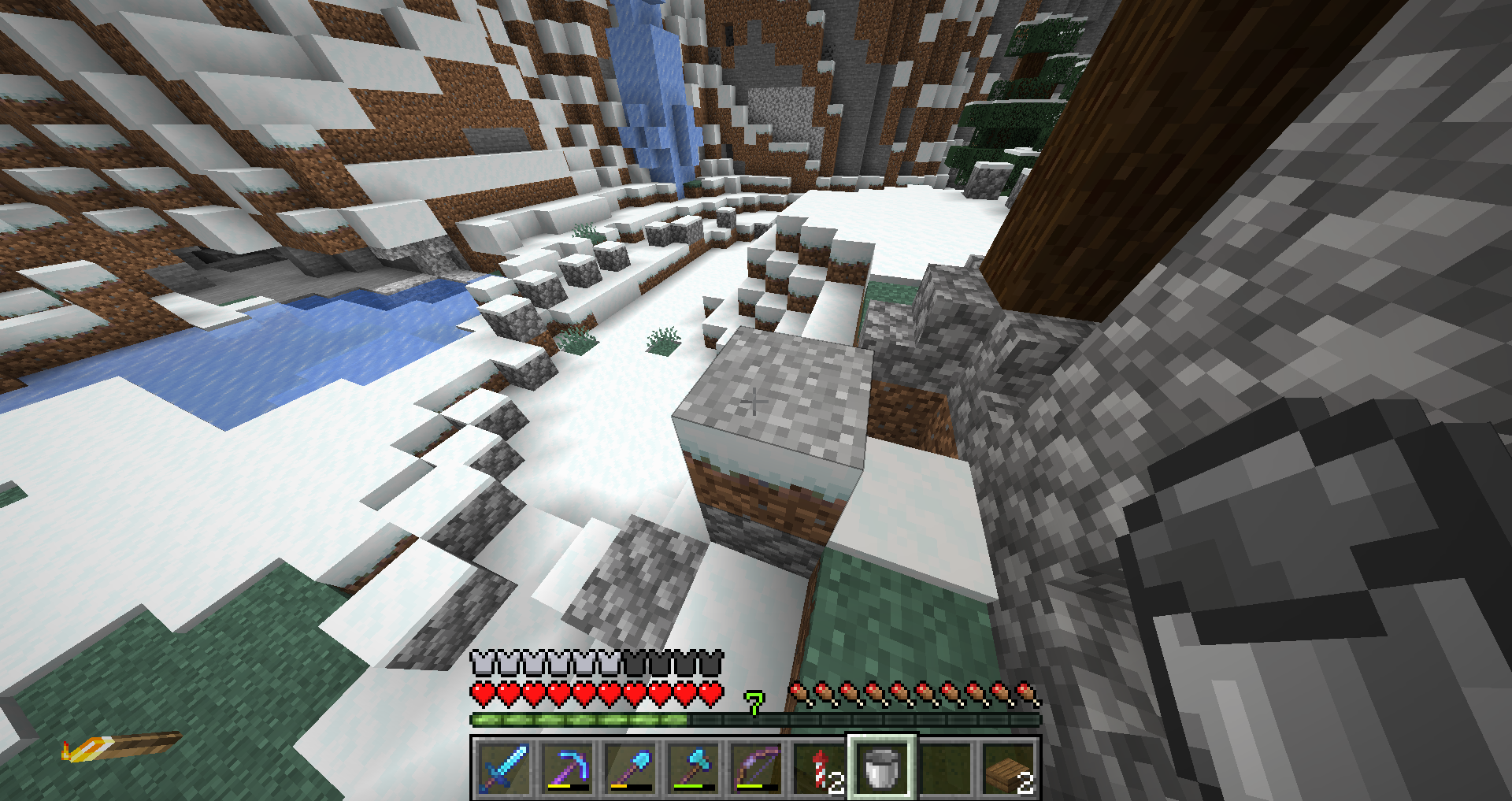 1. Go into a biome with grass covered with snow (This bug may happen in any biome so long as there is snow, but it happened for me in a snow tundra)