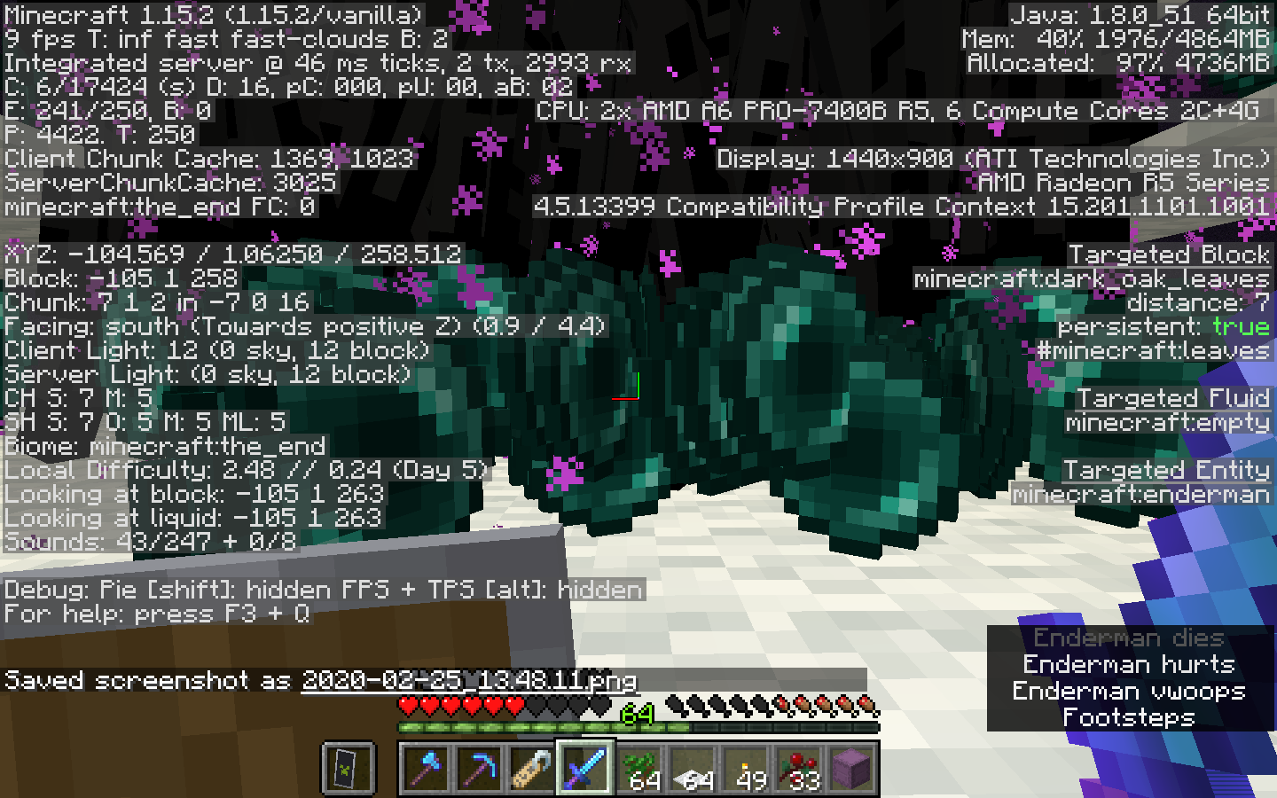experience points hide what's behind them, even if it's chests or items or mobs, you can see the leaves but you can't see the endermen nor the ender pearls. and in one picture you can see a little amount of endremen legs, but you still can't see the ender pearls - the newest pic-